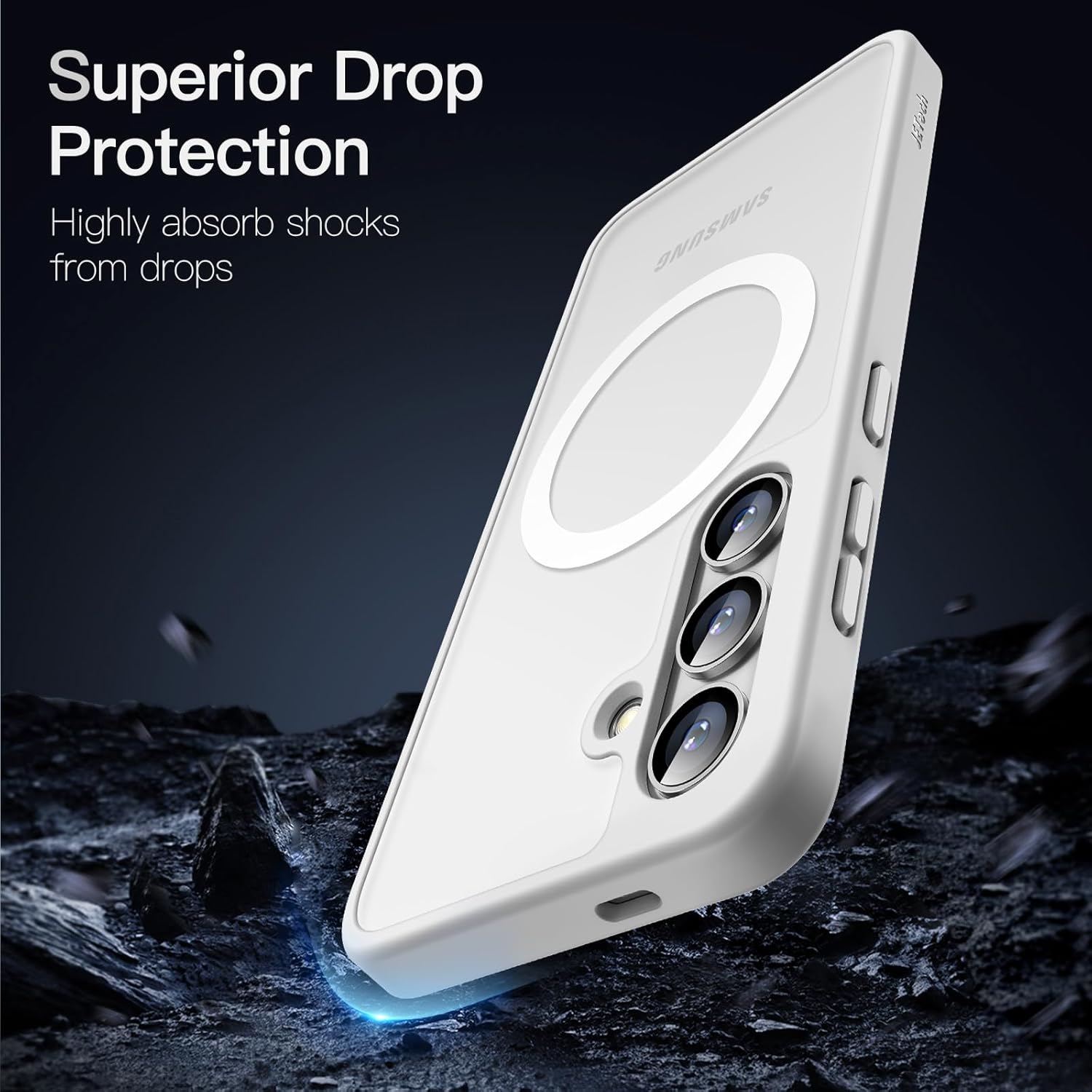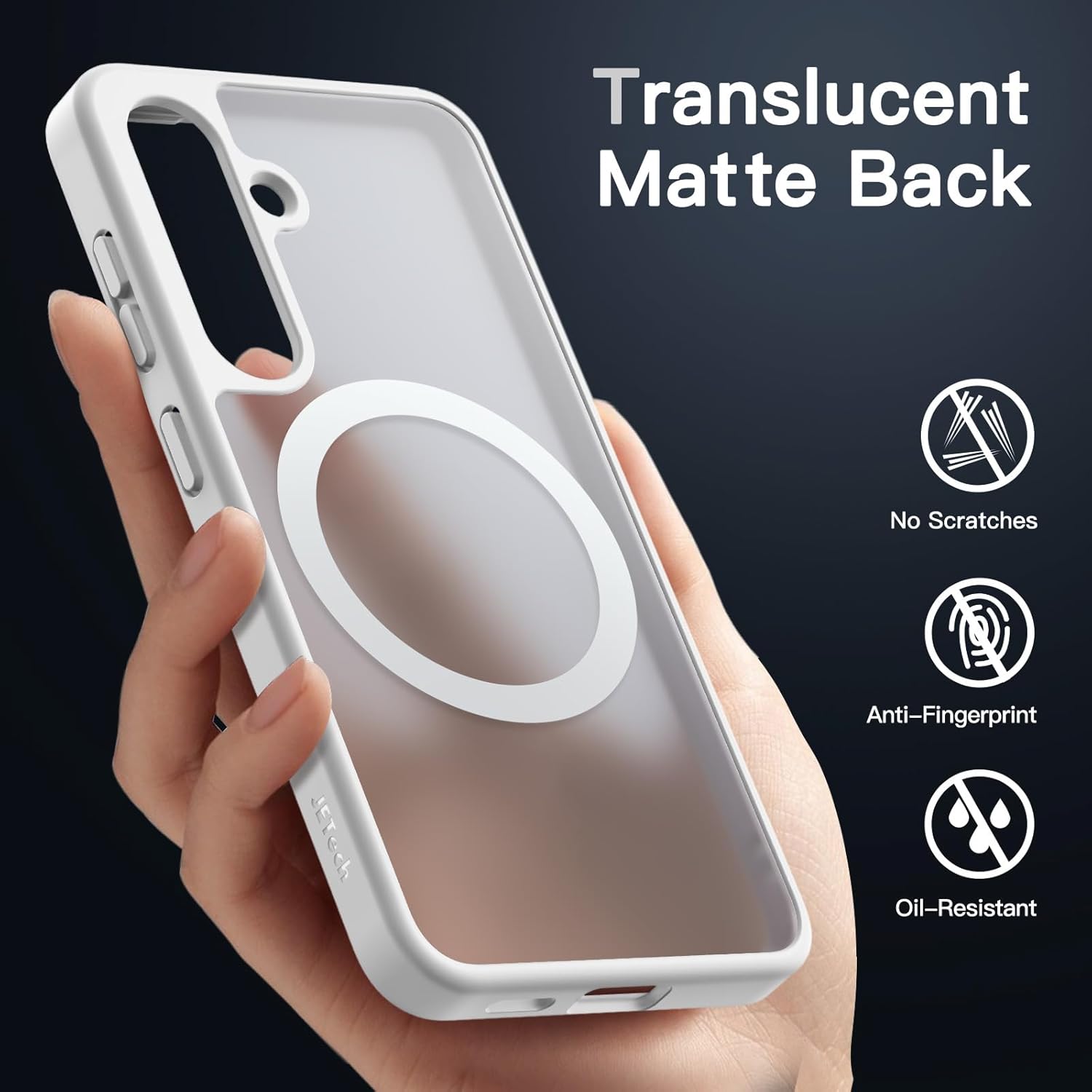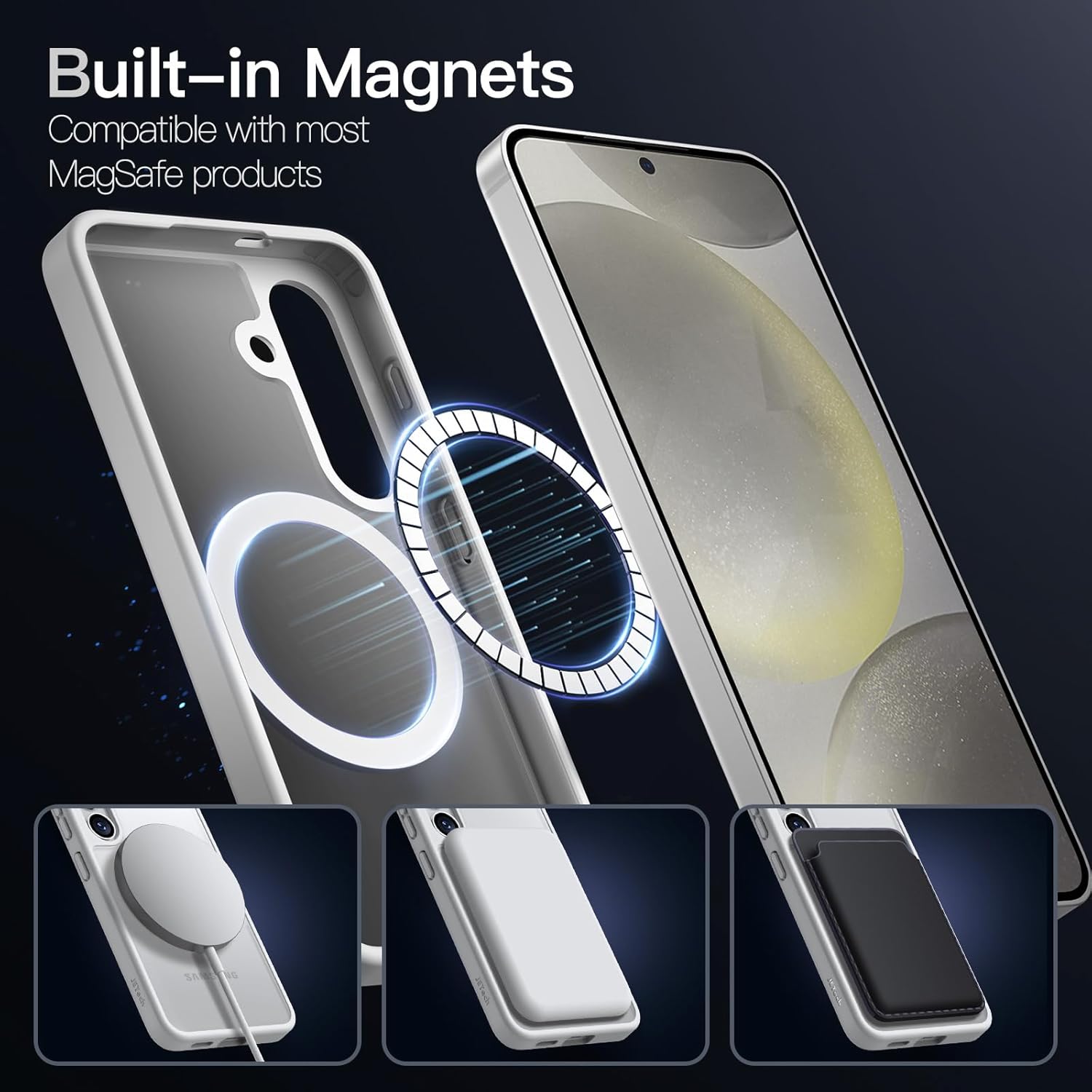 JETech Магнитен калъф за Samsung Galaxy S24 5G, Съвместим с MagSafe, Прозрачен матов гръб, Удароустойчив калъф за мобилен телефон
