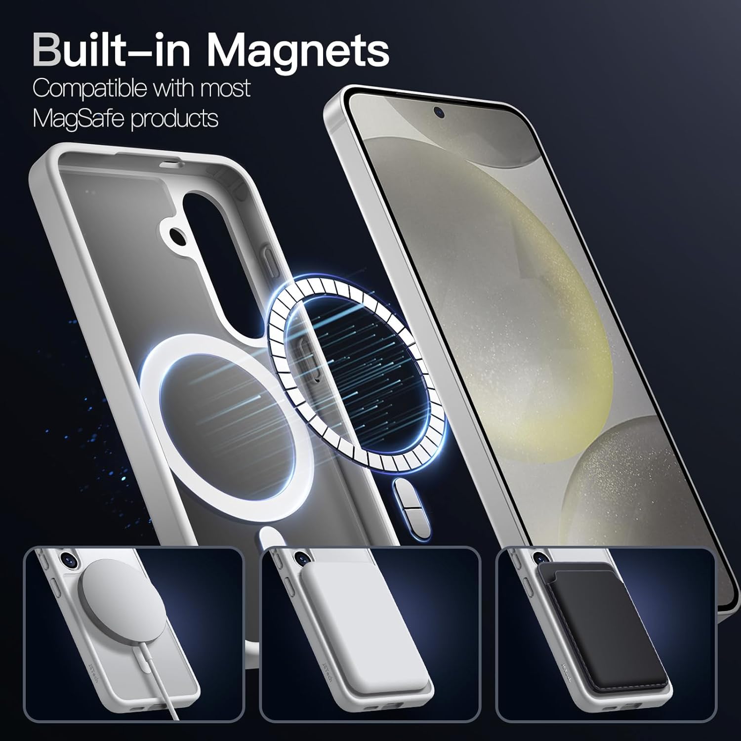 JETech Магнитен калъф за Samsung Galaxy S24 5G, Съвместим с MagSafe, Прозрачен матов гръб, Удароустойчив калъф за мобилен телефон