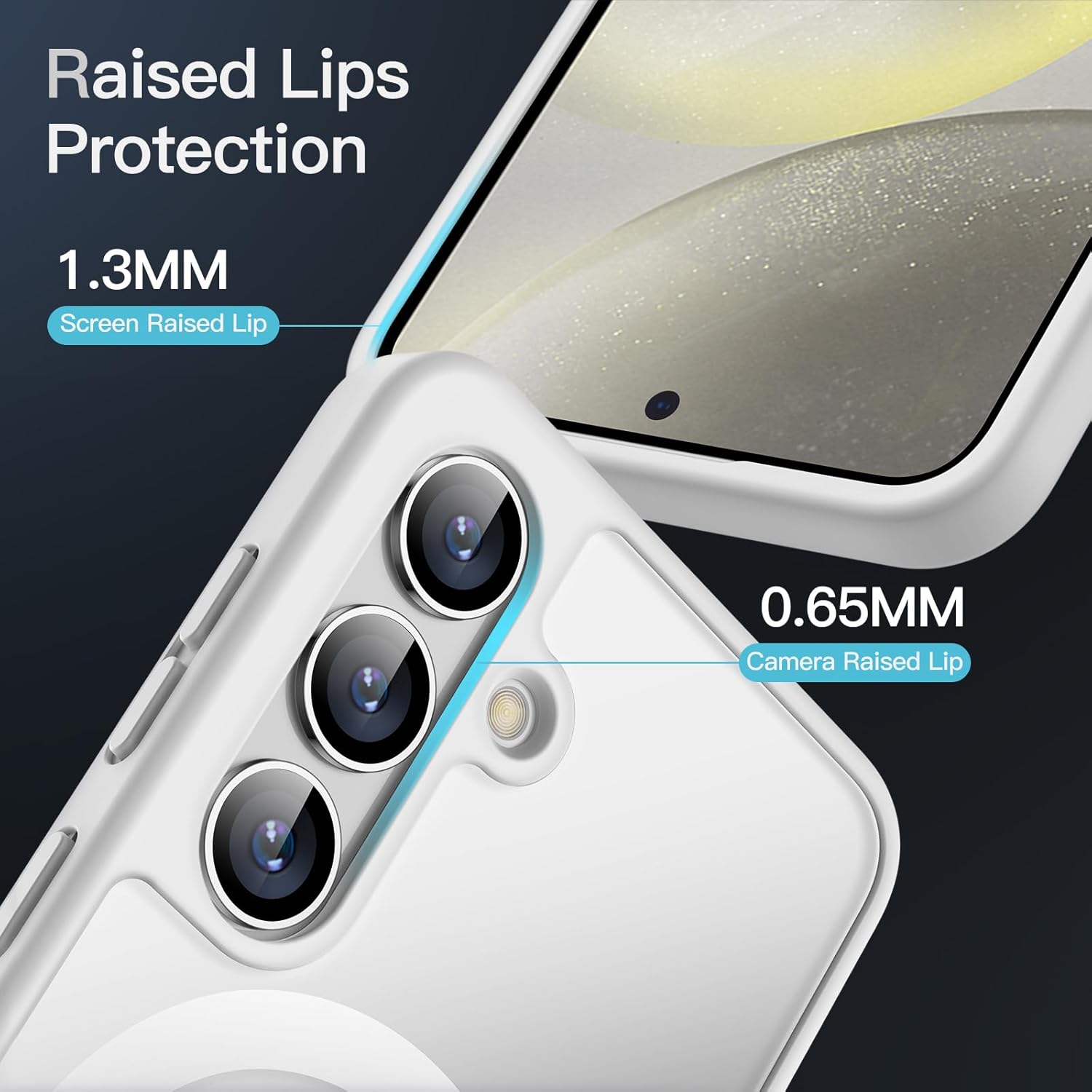JETech Магнитен калъф за Samsung Galaxy S24 5G, Съвместим с MagSafe, Прозрачен матов гръб, Удароустойчив калъф за мобилен телефон (Сребрист)