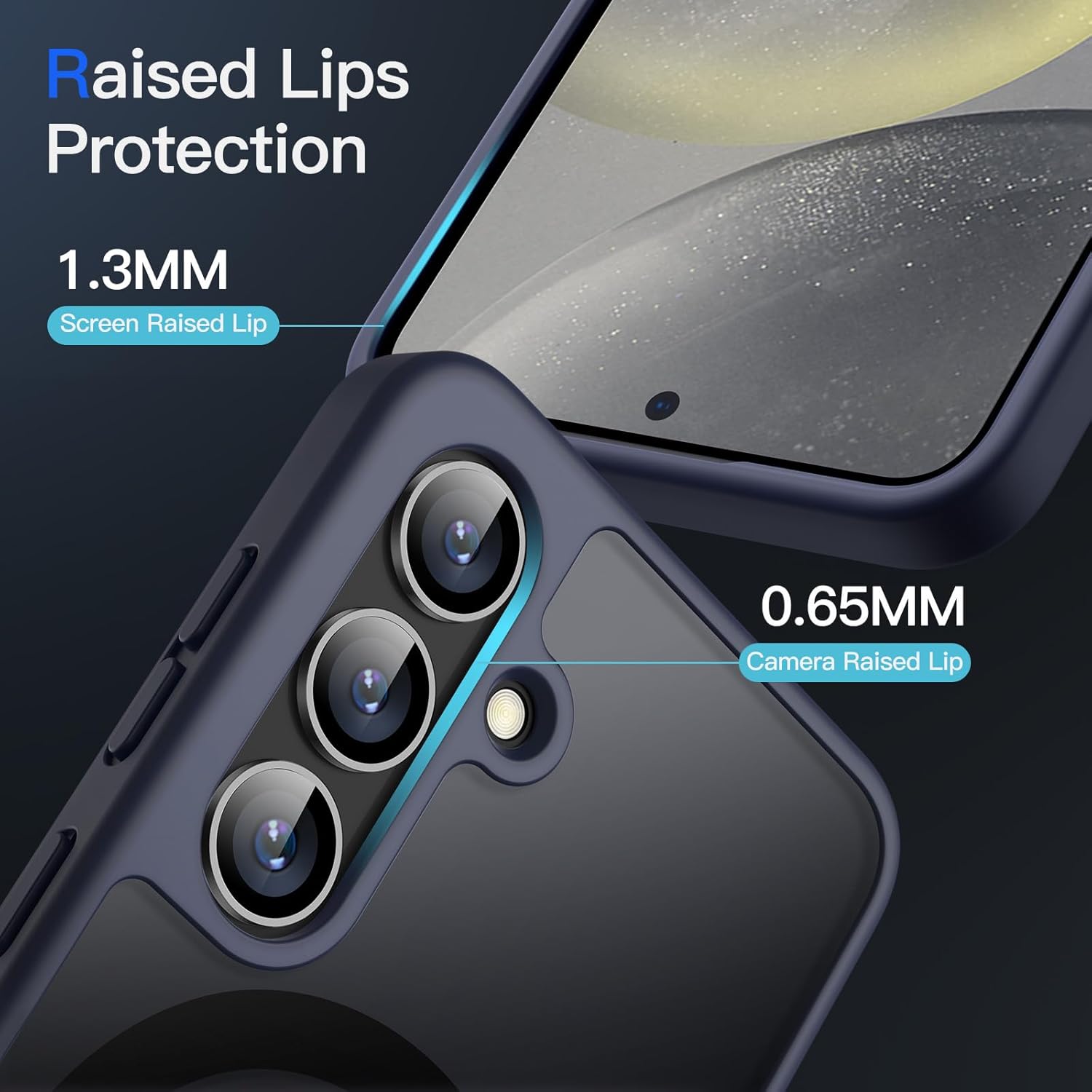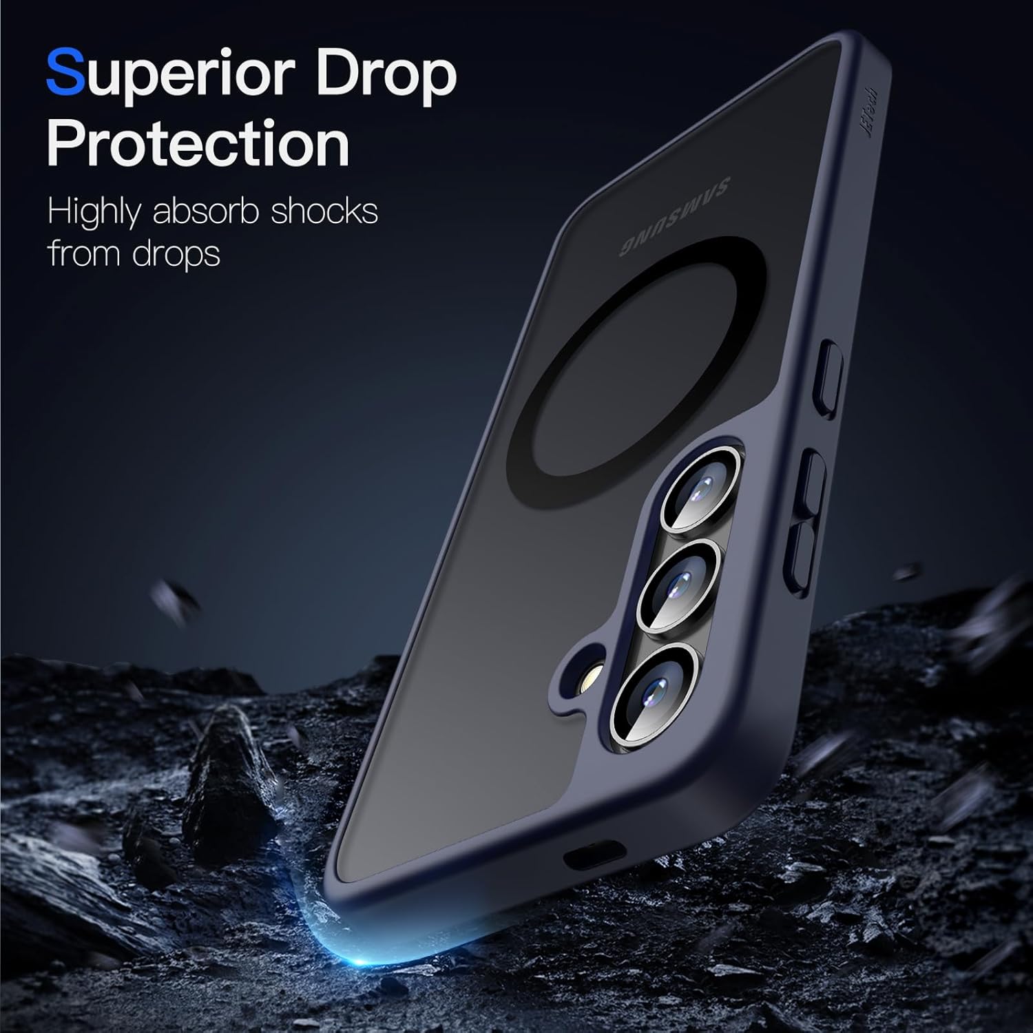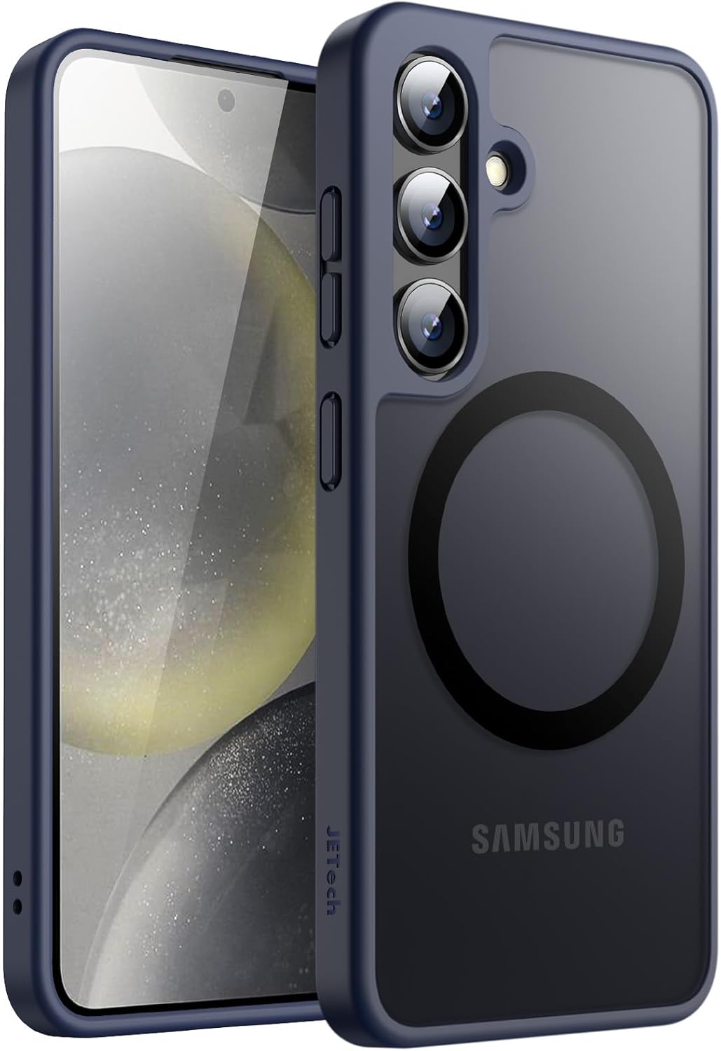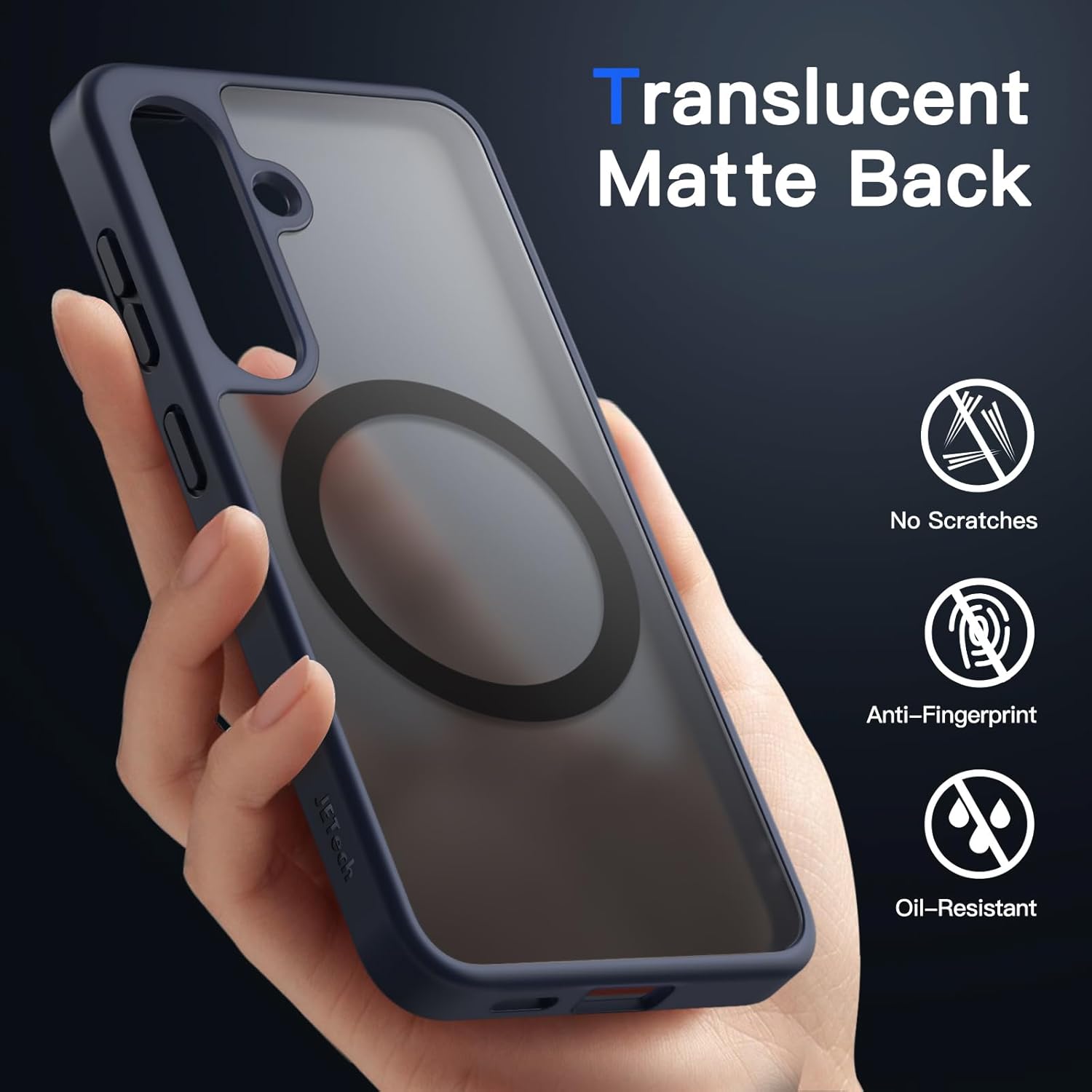 JETech Магнитен калъф за Samsung Galaxy S24 5G, Съвместим с MagSafe, Прозрачен матов гръб, Удароустойчив калъф за мобилен телефон (Тъмно син)