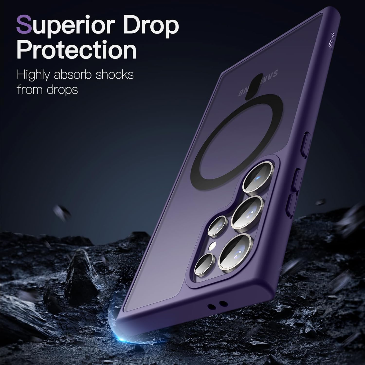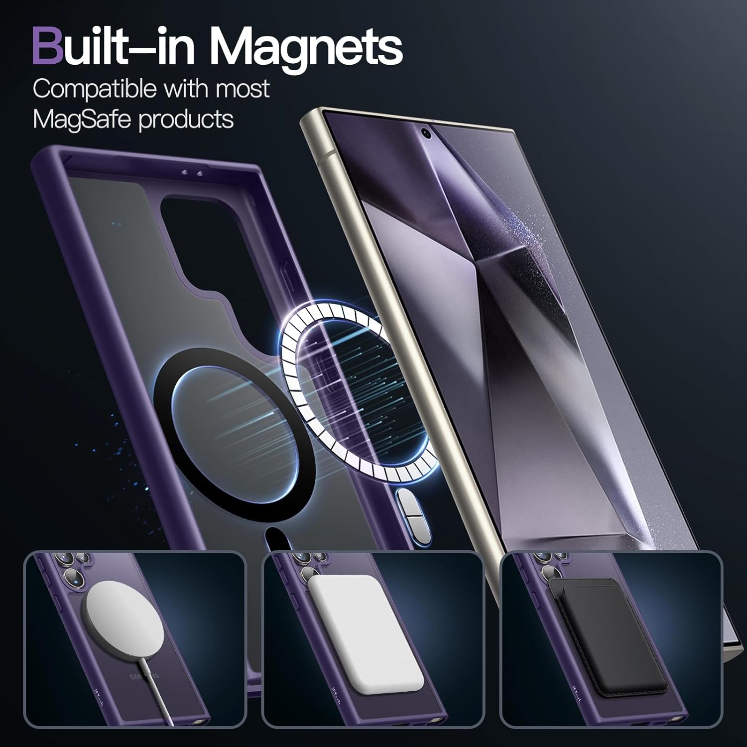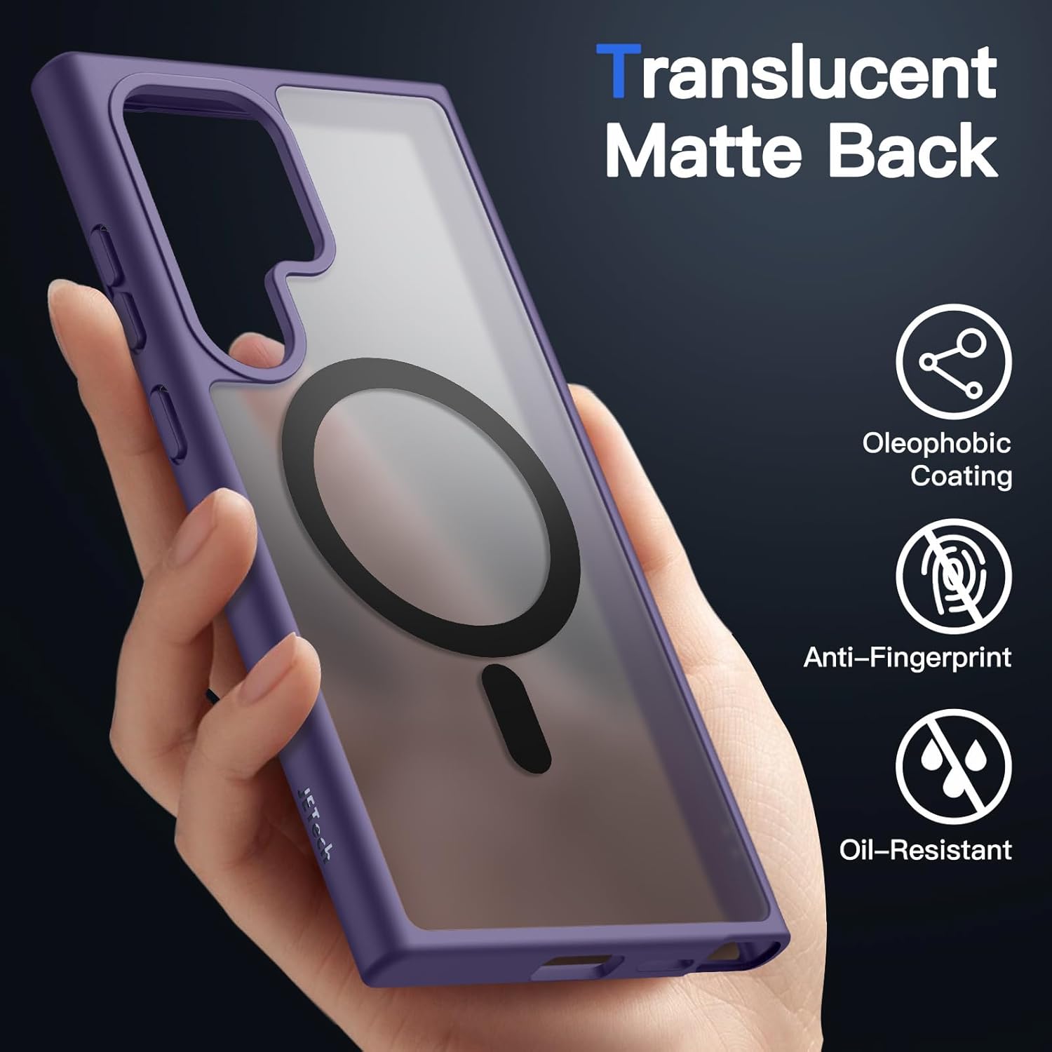 JETech Магнитен калъф за Samsung Galaxy S24 Ultra 5G, Съвместим с MagSafe, Прозрачен матов гръб, Удароустойчив калъф за мобилен телефон (Титаниево лилав)