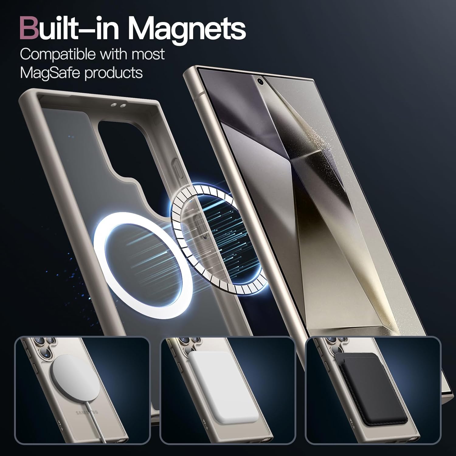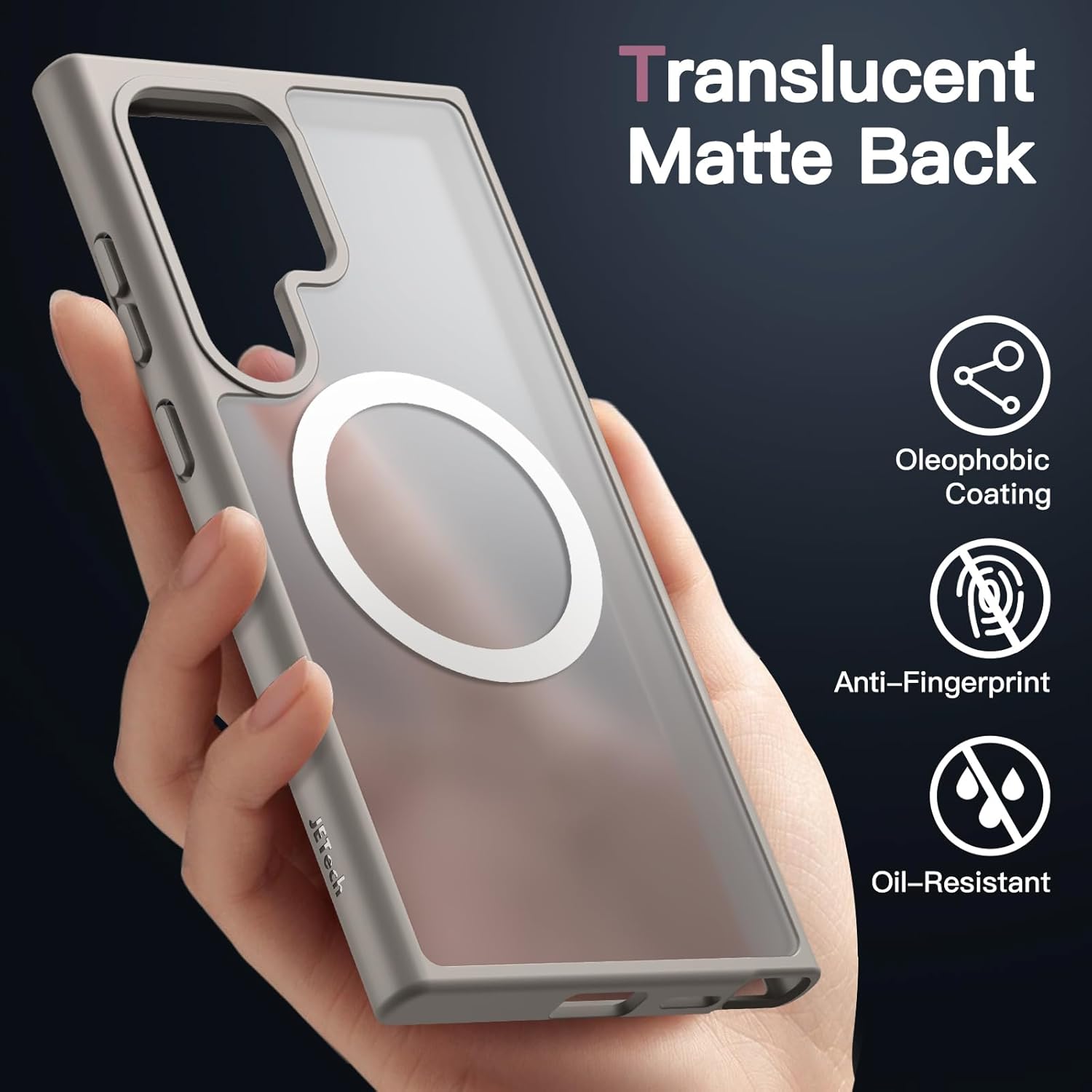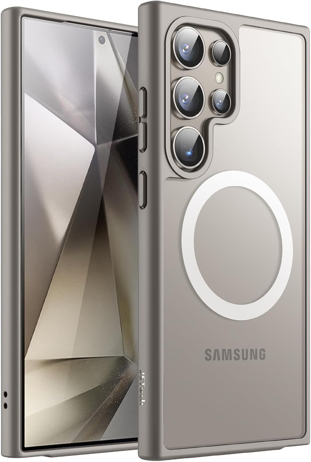 JETech Магнитен калъф за Samsung Galaxy S24 Ultra 5G, Съвместим с MagSafe, Прозрачен матов гръб, Удароустойчив калъф за мобилен телефон (Титаниево сив)