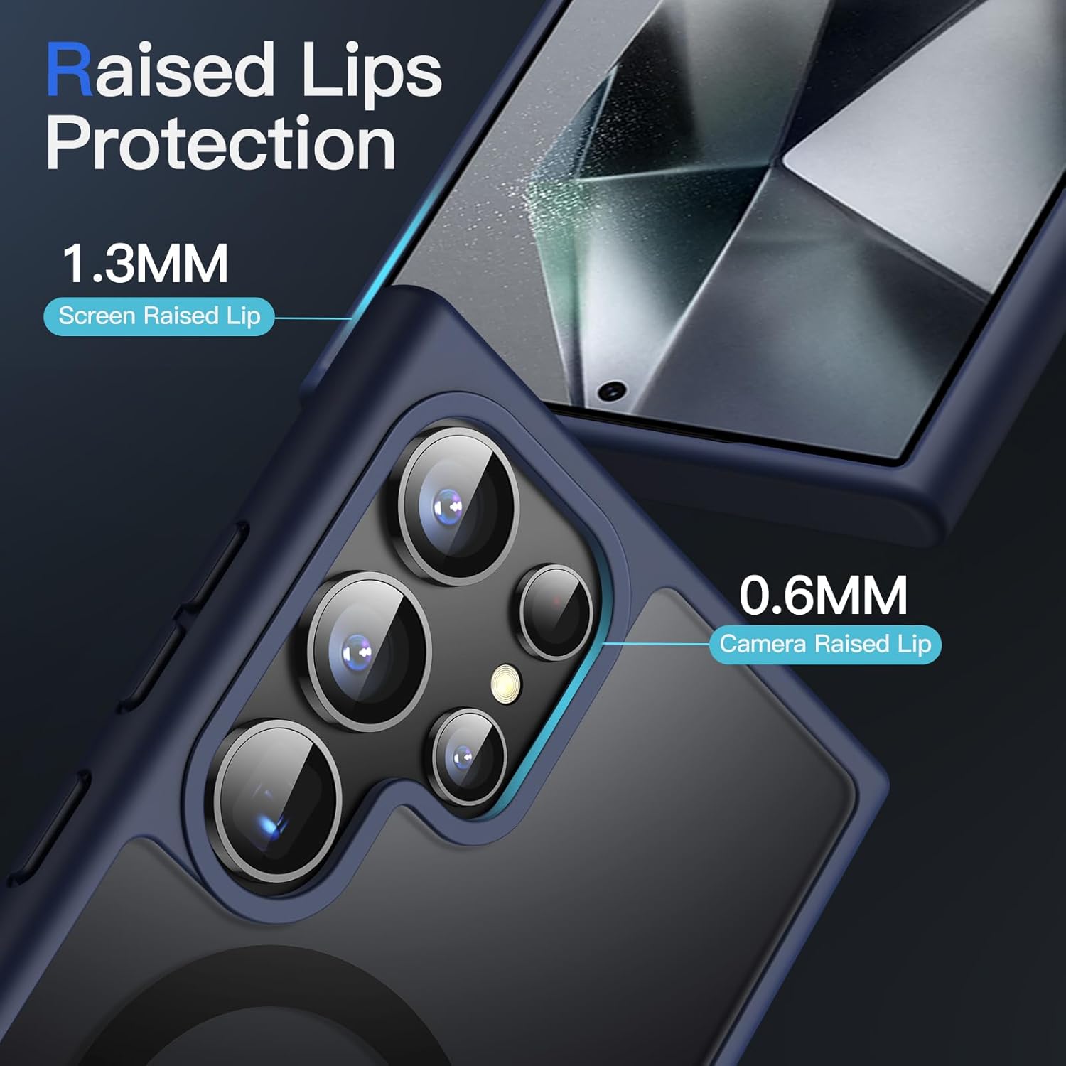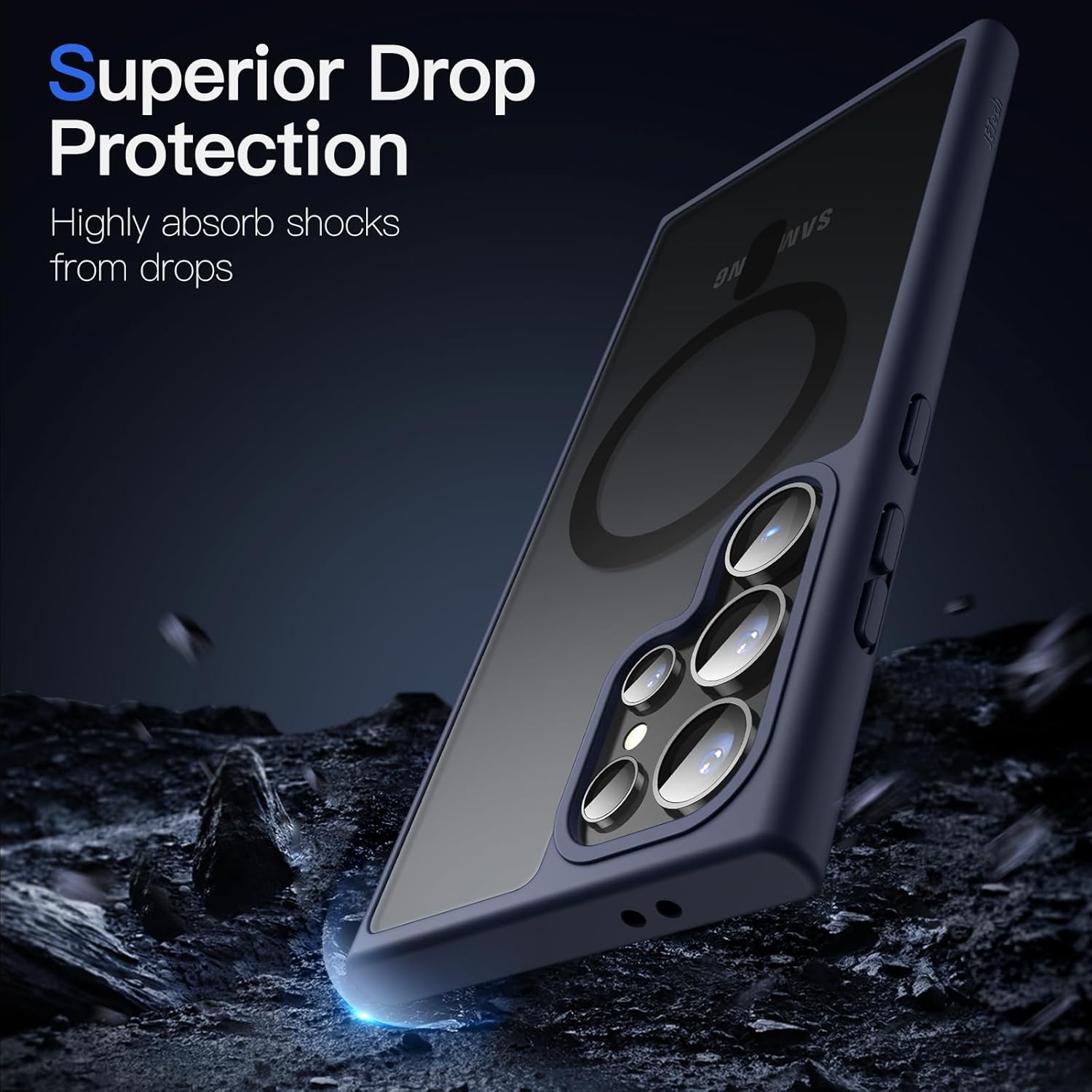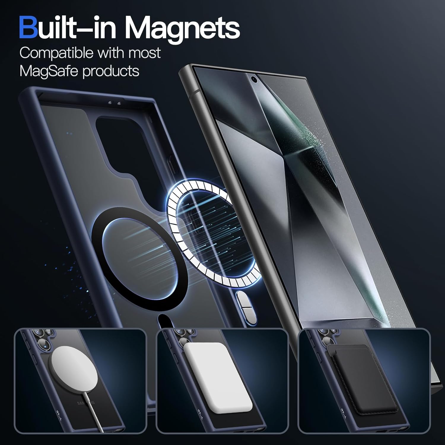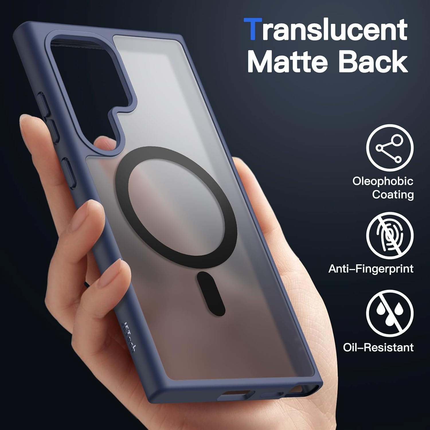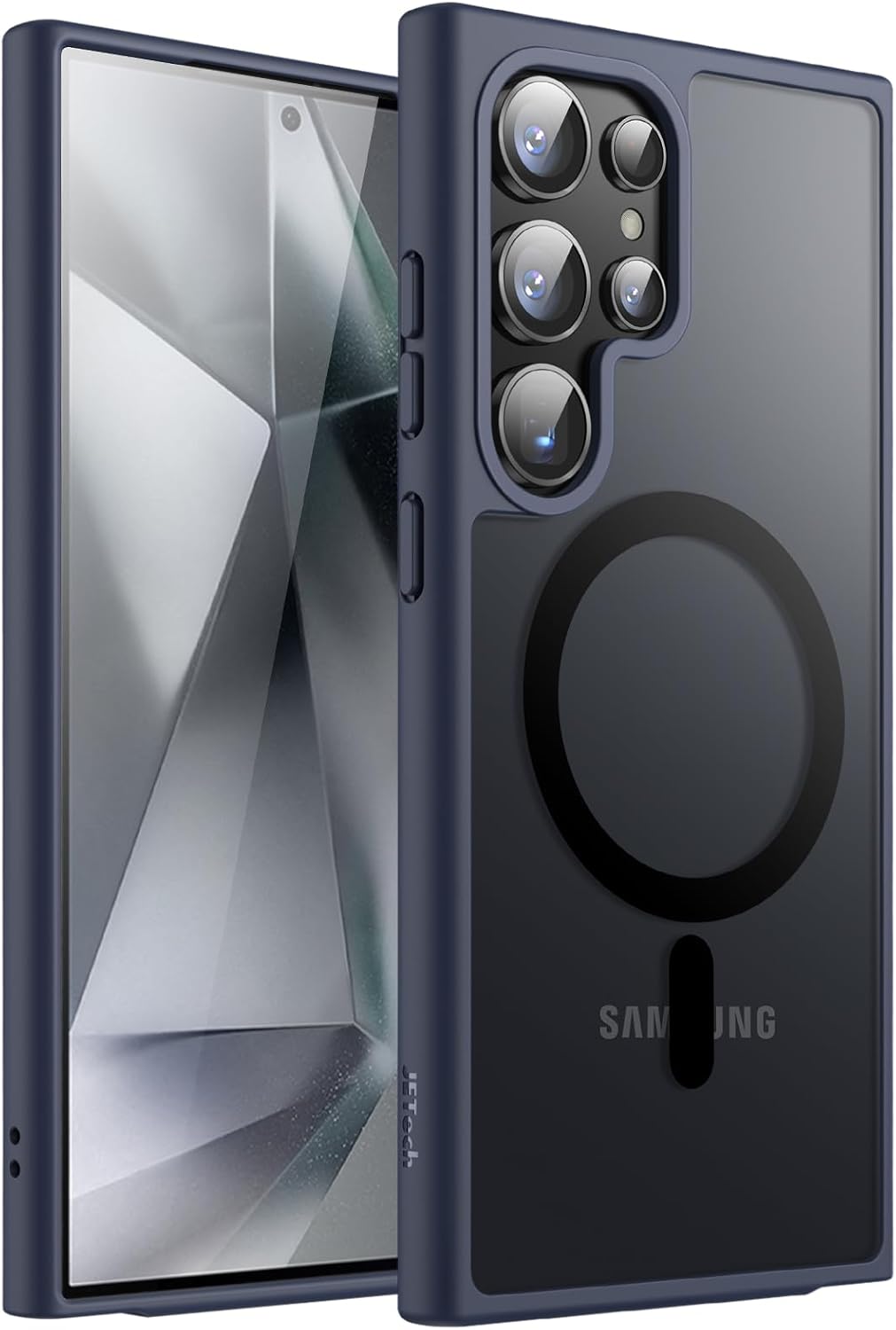 JETech Магнитен калъф за Samsung Galaxy S24 Ultra 5G, Съвместим с MagSafe, Прозрачен матов гръб, Удароустойчив калъф за мобилен телефон (Тъмно син)