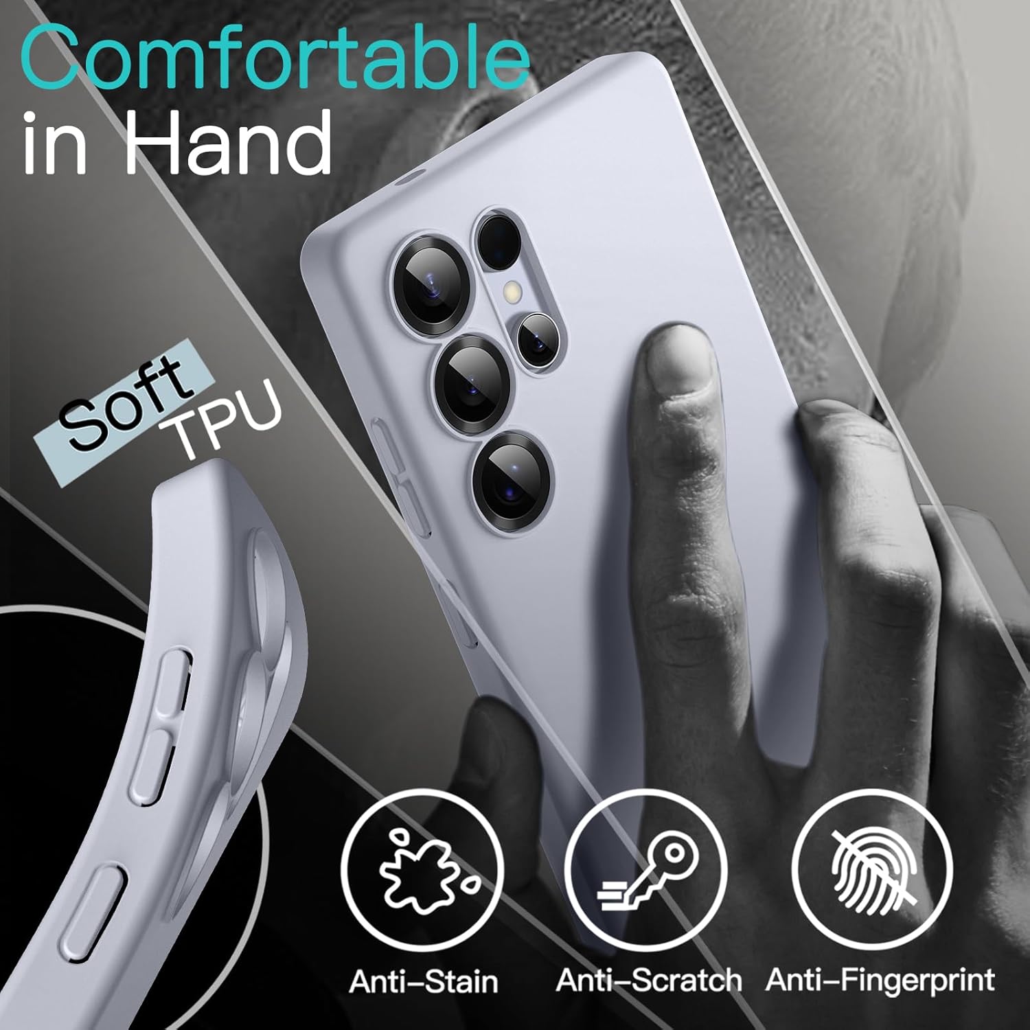 JETech тънък калъф с дебелина 0.6 мм за Samsung Galaxy S25 Ultra 5G, пълна защита на камерата, мек TPU материал, тънък защитен калъф с матово покритие, удароустойчив (титаниево сребристосин)