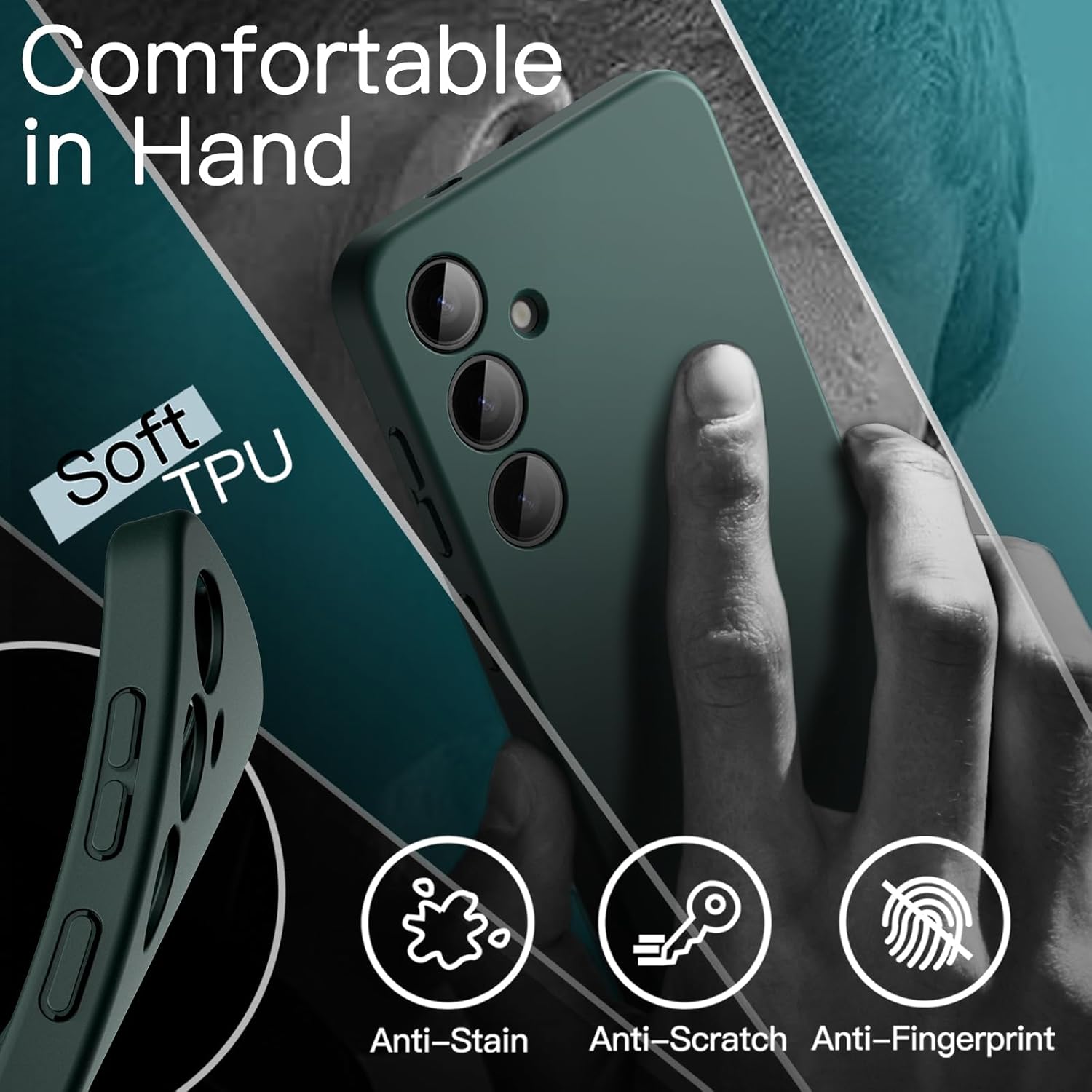 JETech тънък калъф за Samsung Galaxy S24+ / S24 Plus 5G, пълна защита на камерата, мек TPU тънък защитен калъф с матово покритие, удароустойчив (полунощно зелено)