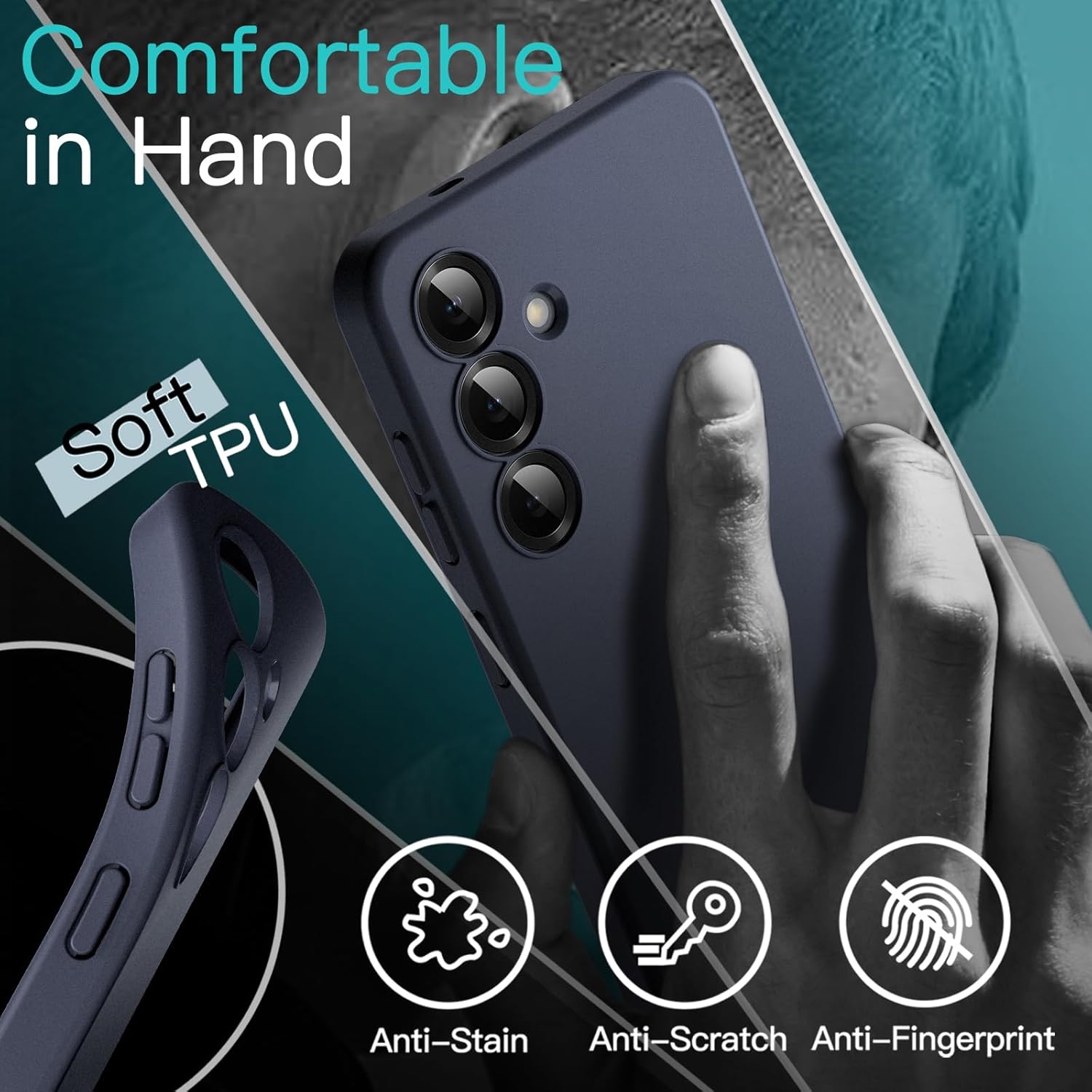 JETech тънък калъф за Samsung Galaxy S25+ / S25 Plus 5G, пълна защита на камерата, мек TPU тънък защитен калъф с матово покритие, удароустойчив (тъмносин)