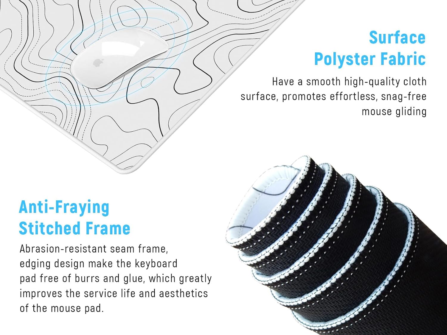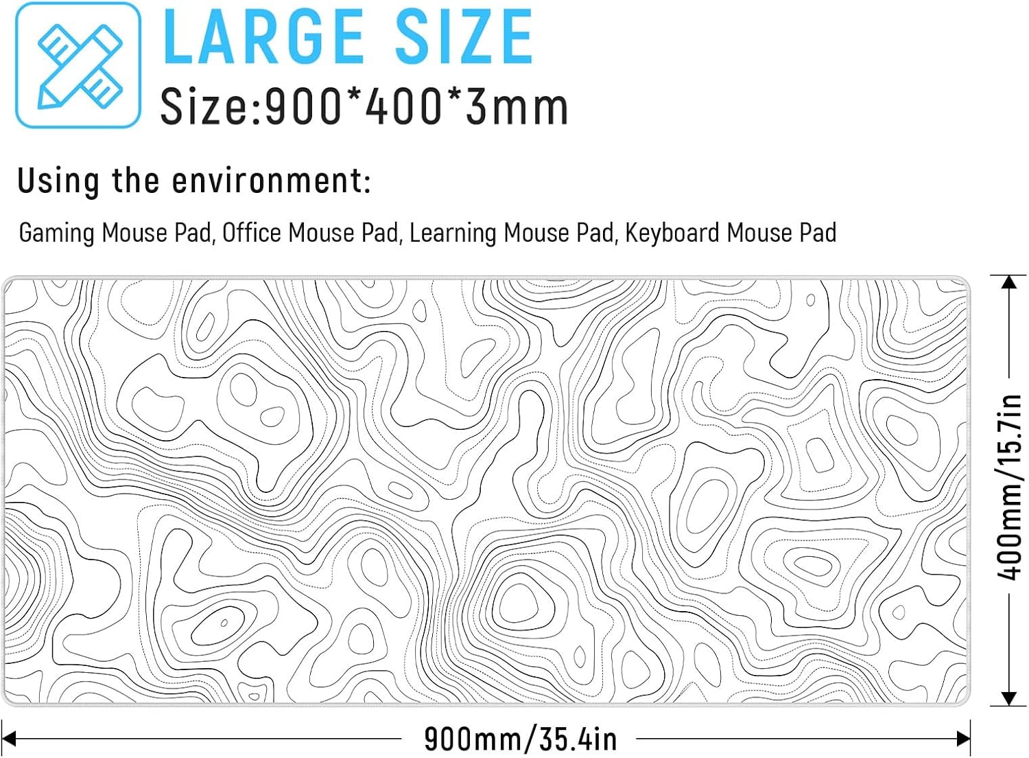 Jialong Gaming Mouse Mat настолна подложка, зашити ръбове, неплъзгаща се подложка за мишка със специална повърхност, подобряваща скоростта и прецизността, бяла, топографска