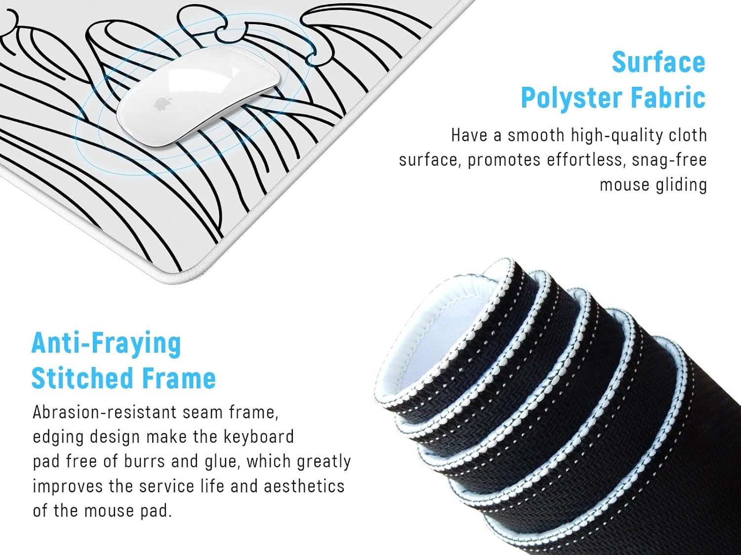 • Неплъзгаща се гумена основа: Меката и плътна неплъзгаща се основа, изработена от естествен каучук, държи тази подложка за бюро здраво на място. Просто се потопете в работата или игрите си, без да се притеснявате за досадното движение на подложката за мишка.