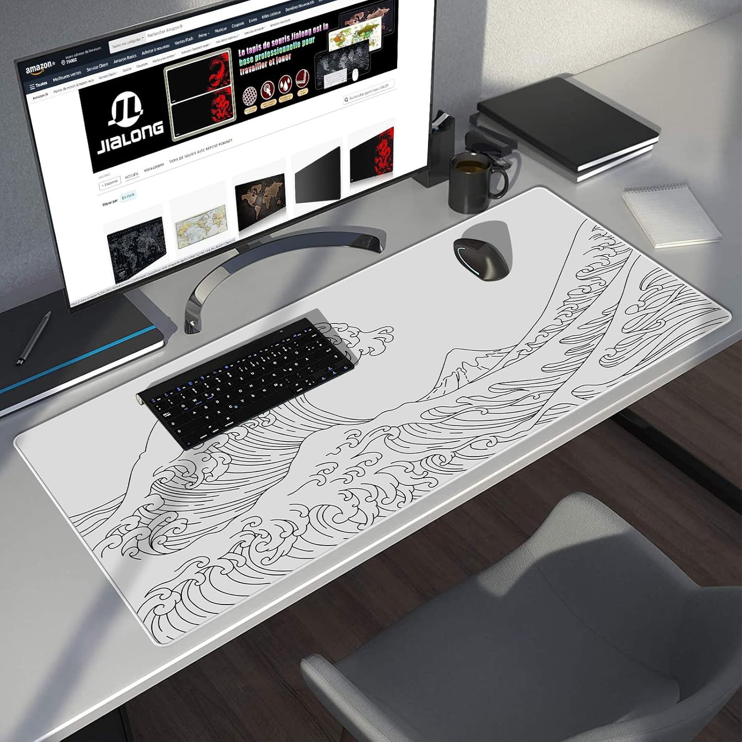 JIALONG XXL Speed ​​Gaming подложка за мишка, бяла, 900 x 400 мм, XXL подложка за мишка, подложка за маса, подложка за бюро, водоустойчива, неплъзгаща се подложка за мишка за компютър, компютър и лаптоп