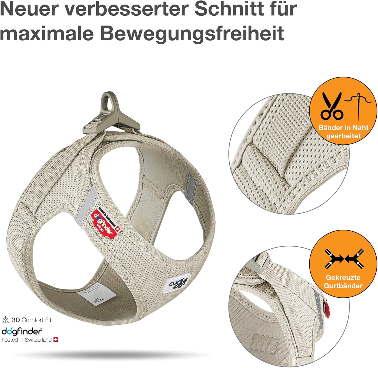 The new sewing pattern and a new size scale also promise improved ergonomics and an ideal fit. Sewn-in straps with higher pull attachment ensure that pull on the lead now spreads better and more evenly across the harness. The zigzag seams provide flexible tension distribution.