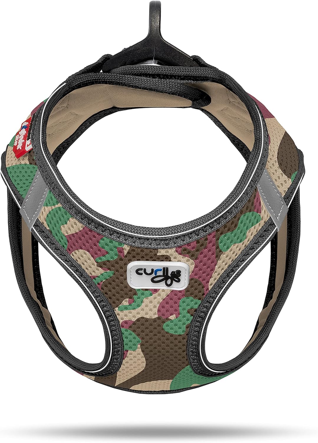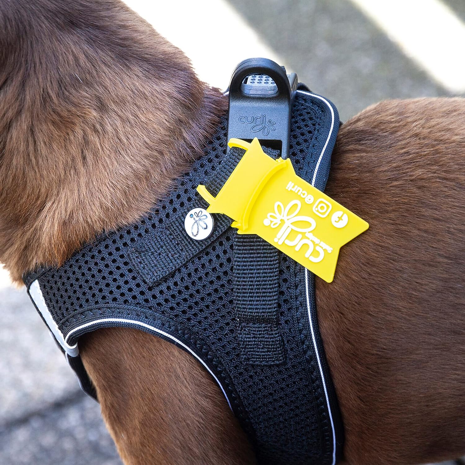 Thanks to the zigzag seams and the lined buckles, the flexible tension distribution ensures high protection against neck injuries and pressure points. The curli D-ring buckle offers maximum comfort: With one click, the harness is secured and can then be easily placed on the lead with one hand.