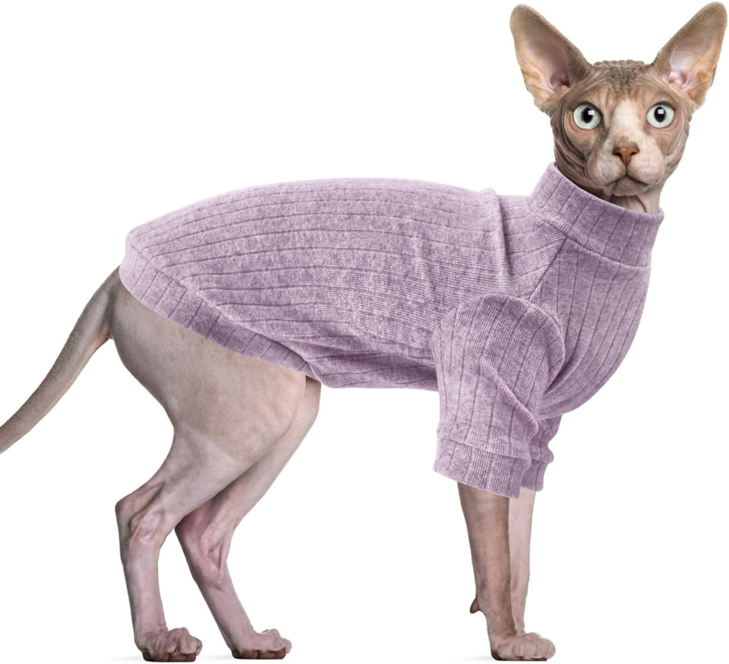 Жилетка за безкосместа котка Сфинкс, пуловер с висока яка, едноделни дрехи за котки с дълъг ръкав, котешко боди, пуловери за котенца за Сфинкс/Корниш Рекс/Девън Рекс/Петербалд