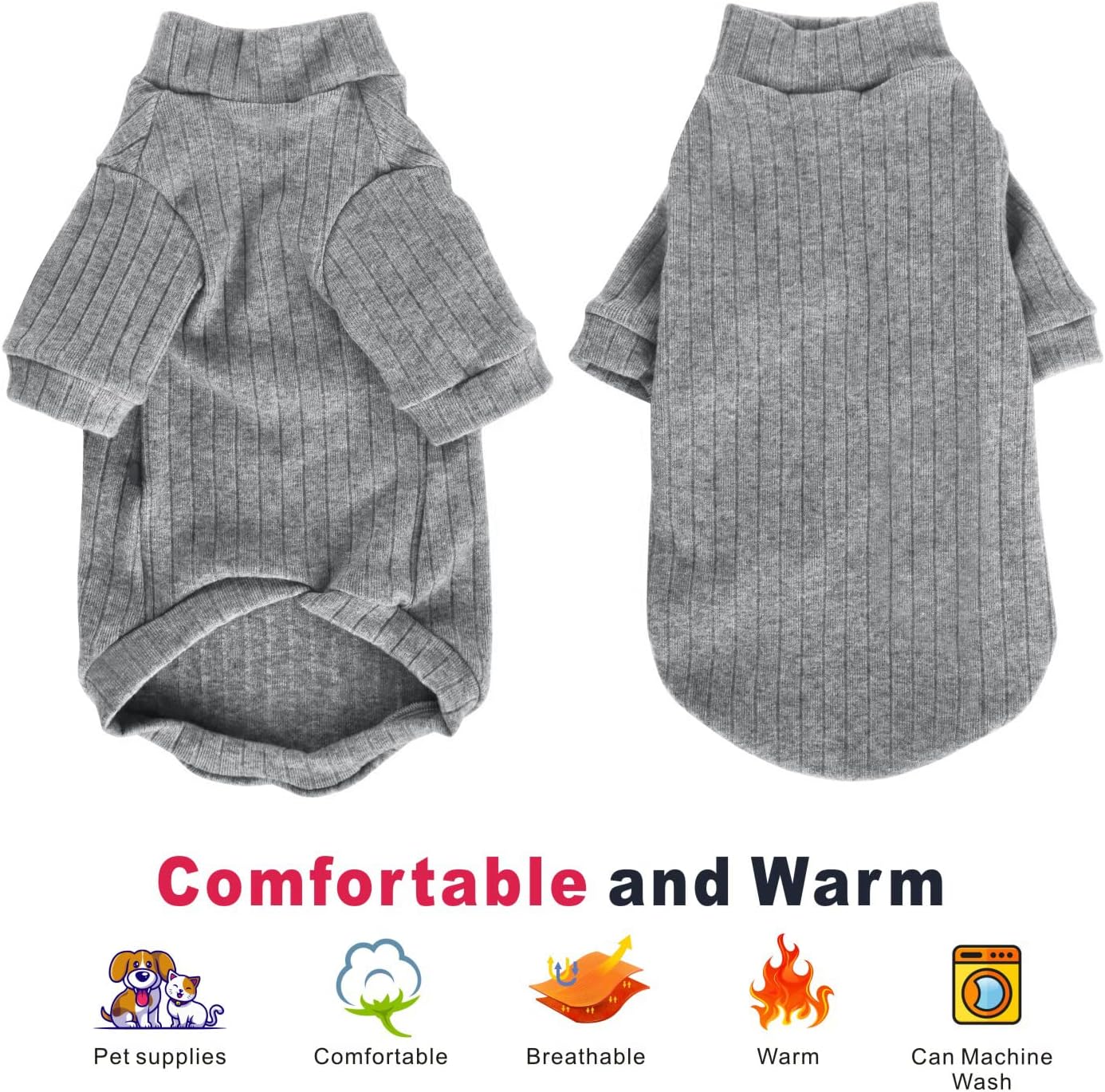 • Класически дизайн и лесен за носене: плетен пуловер с висока яка, класически универсален крой; плътно прилепналият крой се адаптира към тялото на котка; еластичният материал и дизайнът с два крачола улесняват обличането и събличането.