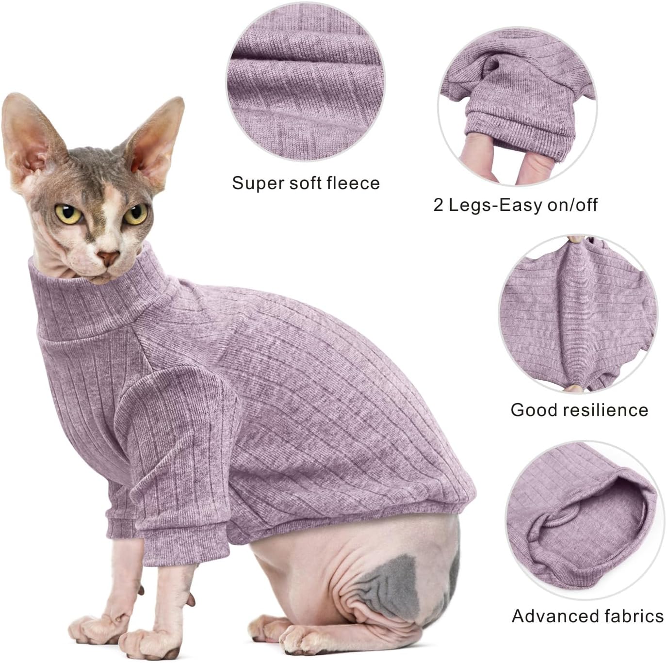 Жилетка за безкосместа котка Сфинкс, пуловер с висока яка, едноделни дрехи за котки с дълъг ръкав, котешко боди, пуловери за котенца за Сфинкс/Корниш Рекс/Девън Рекс/Петербалд