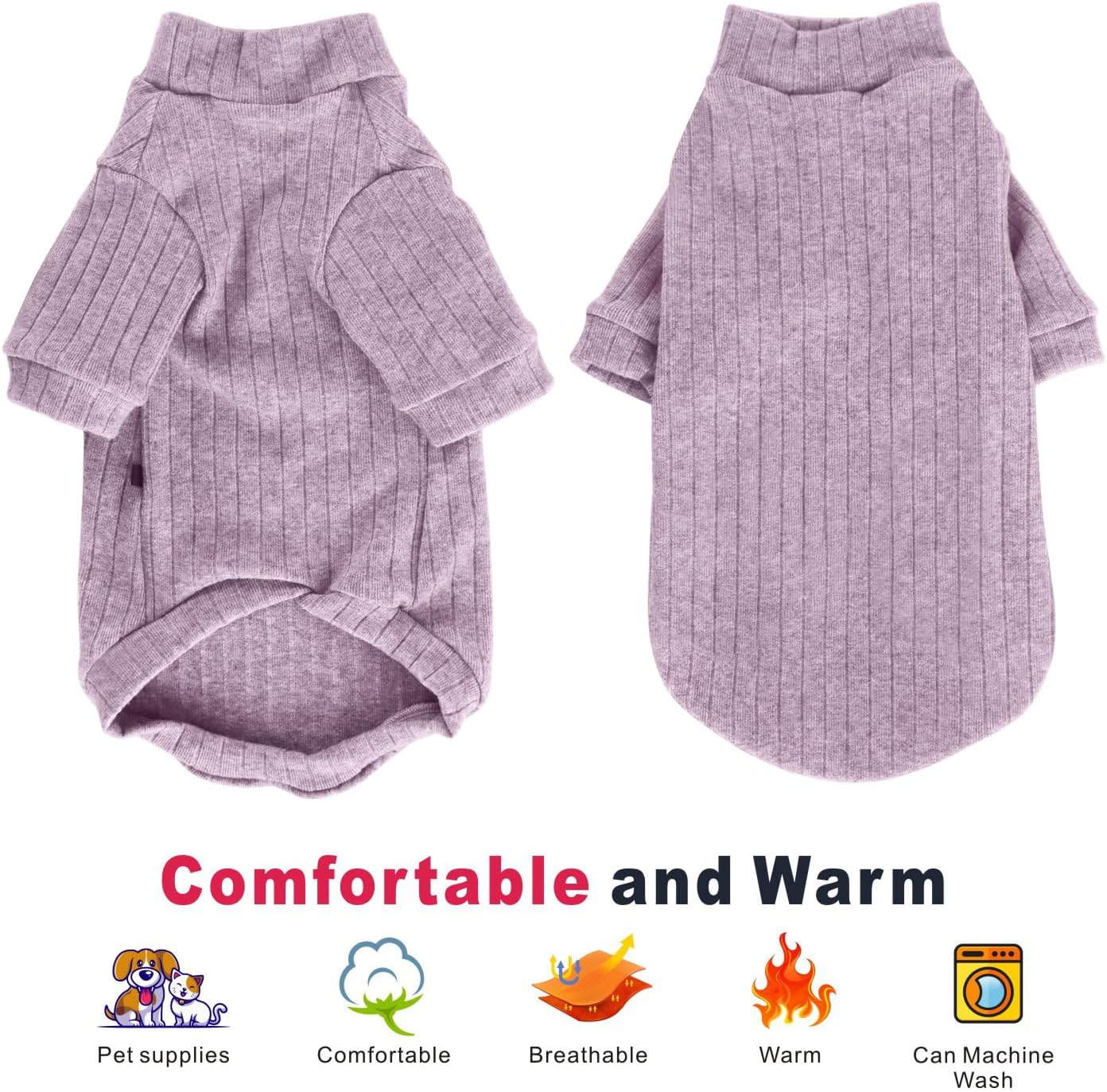 • Класически дизайн и лесен за носене: плетен пуловер с висока яка, класически универсален крой; плътно прилепналият крой се адаптира към тялото на котка; еластичният материал и дизайнът с два крачола улесняват обличането и събличането.