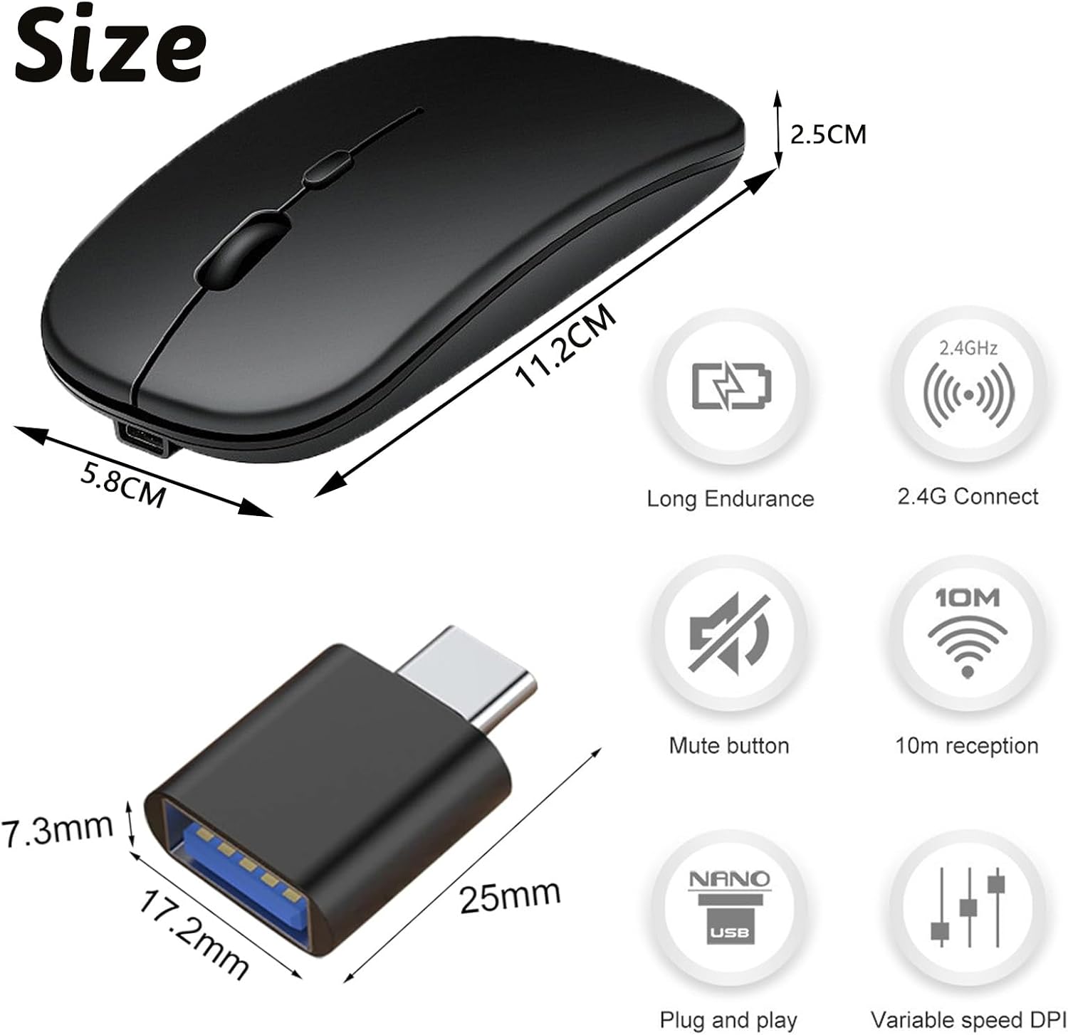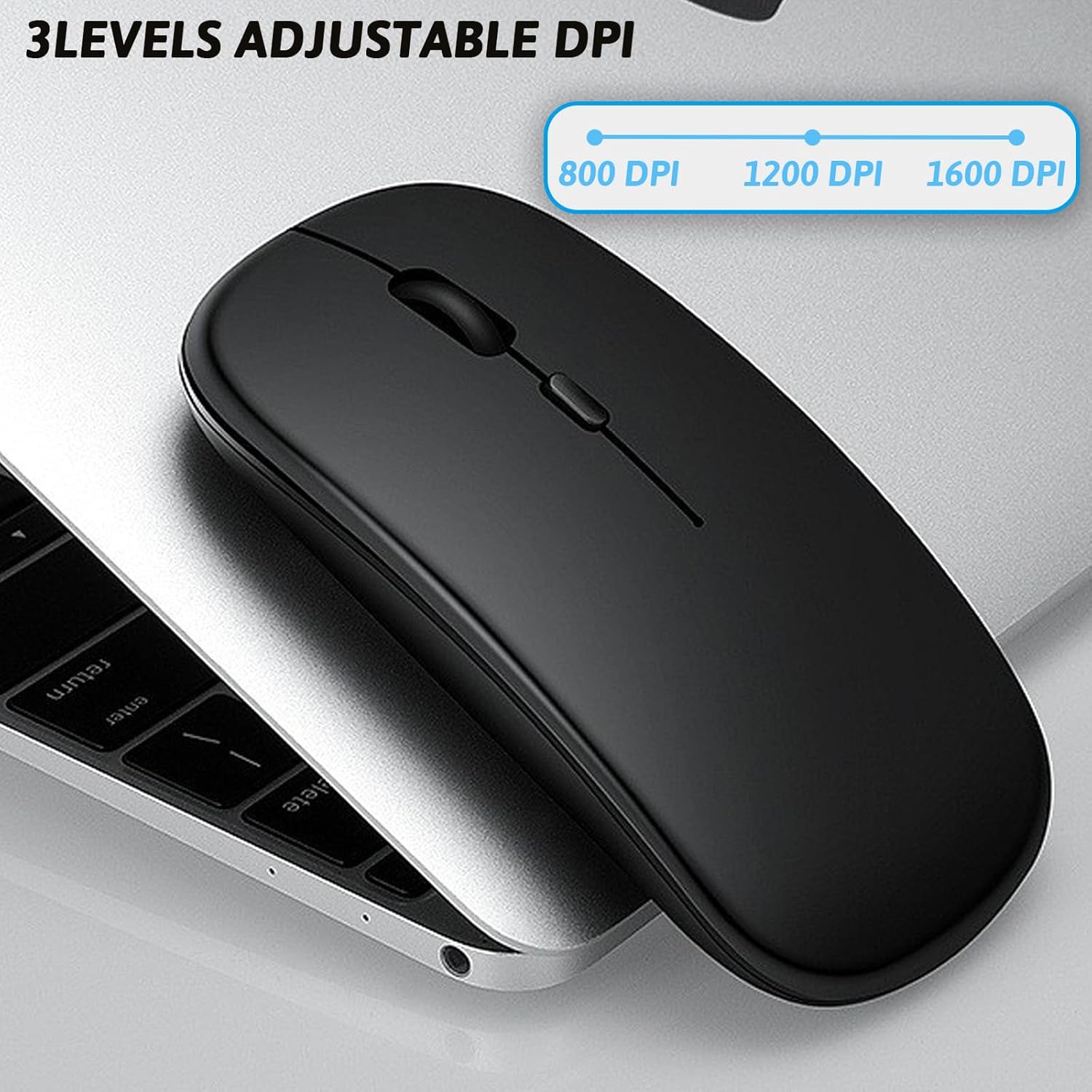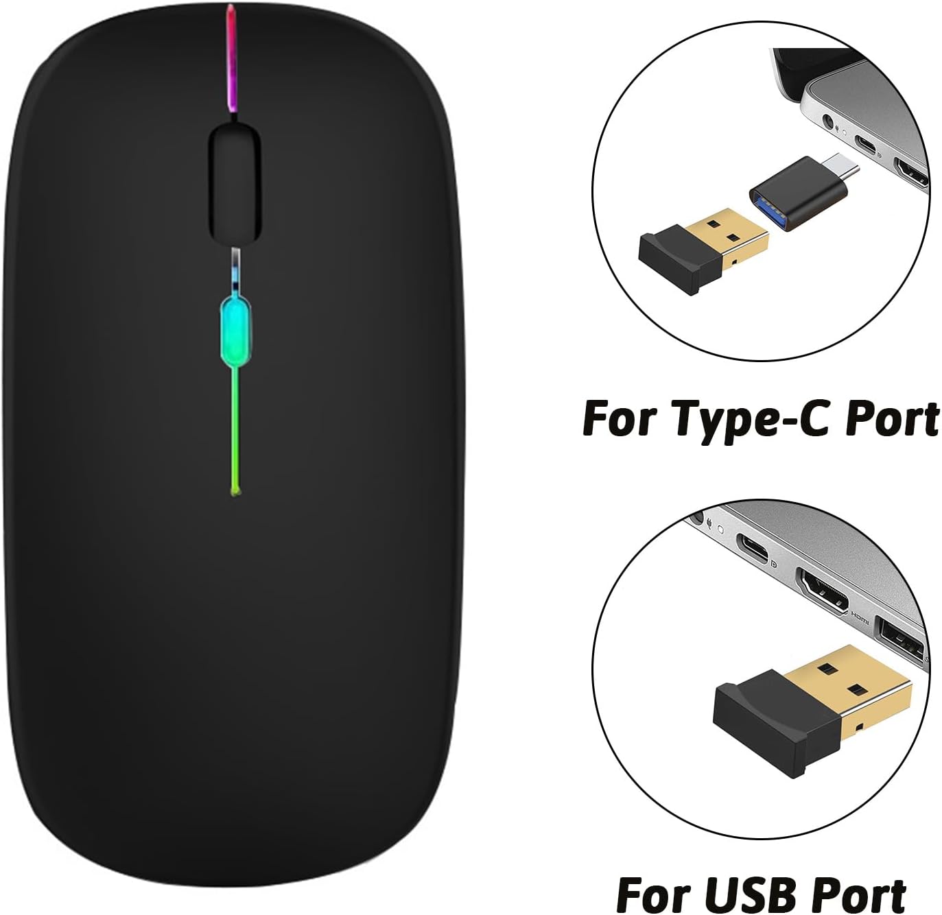 Jinpojun Bluetooth мишка, безжична мишка, 2.4 GHz USB безжична мишка с USB-C адаптер, 3 DPI оптично проследяване, мини акумулаторна LED мишка с два режима за компютър/таблет/Android/Windows