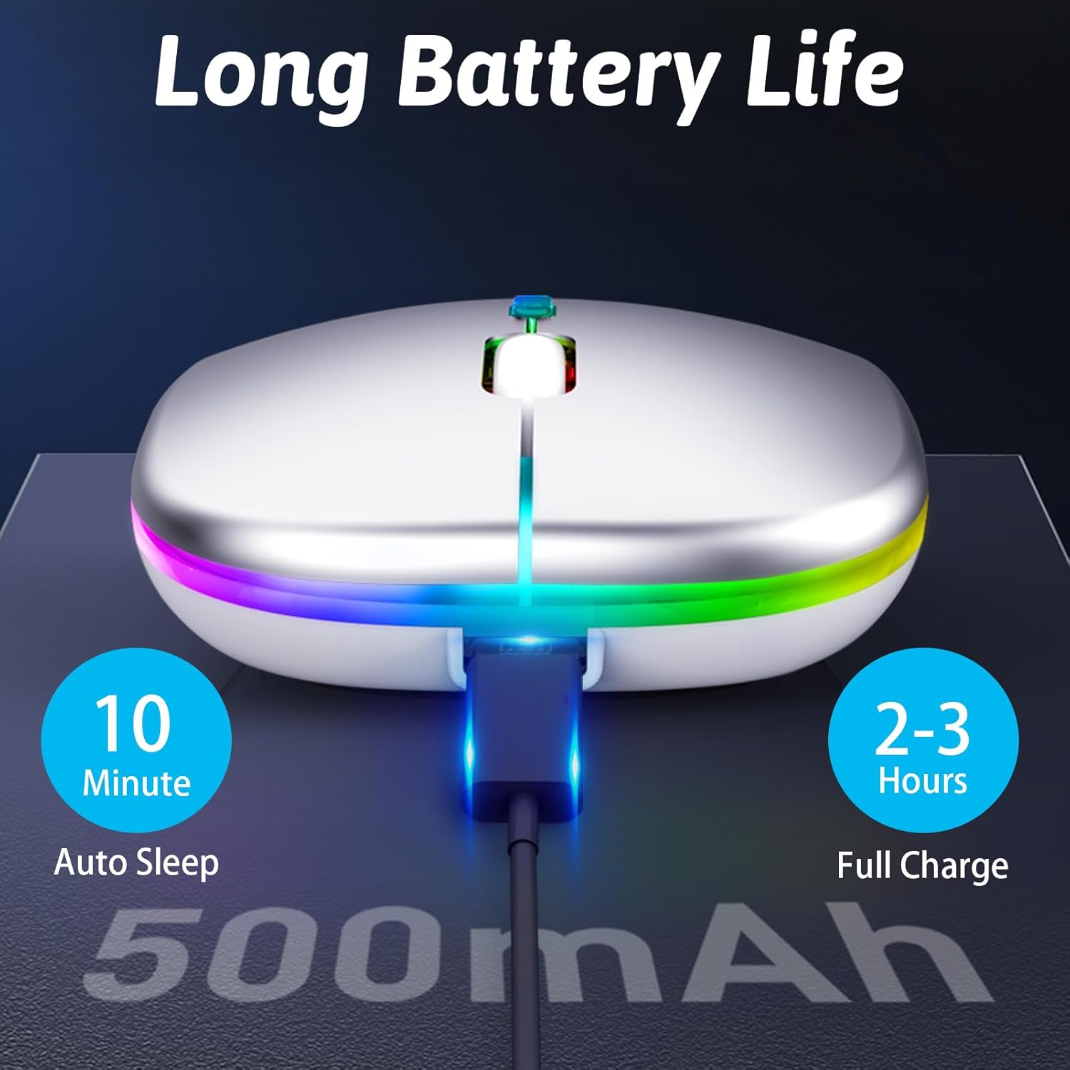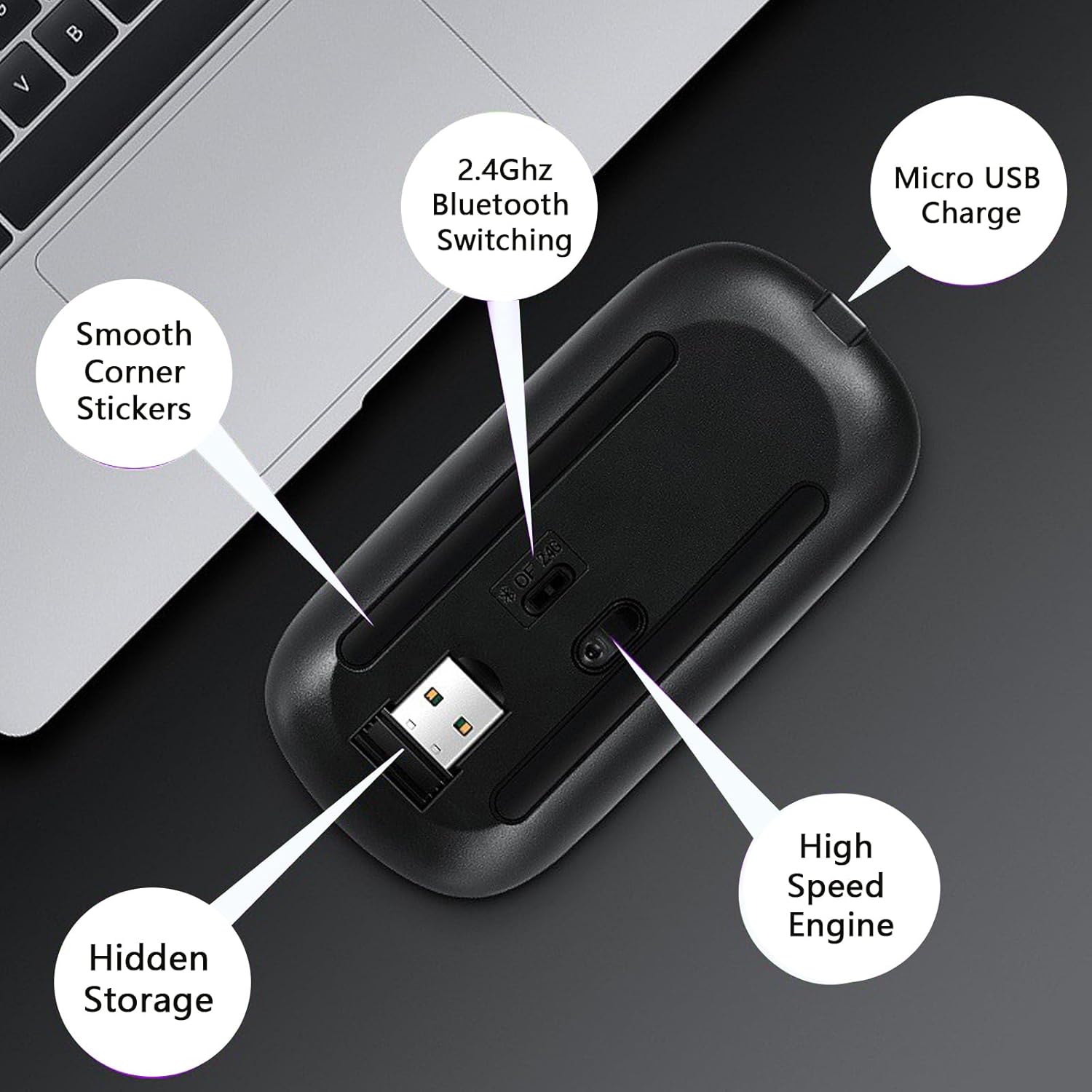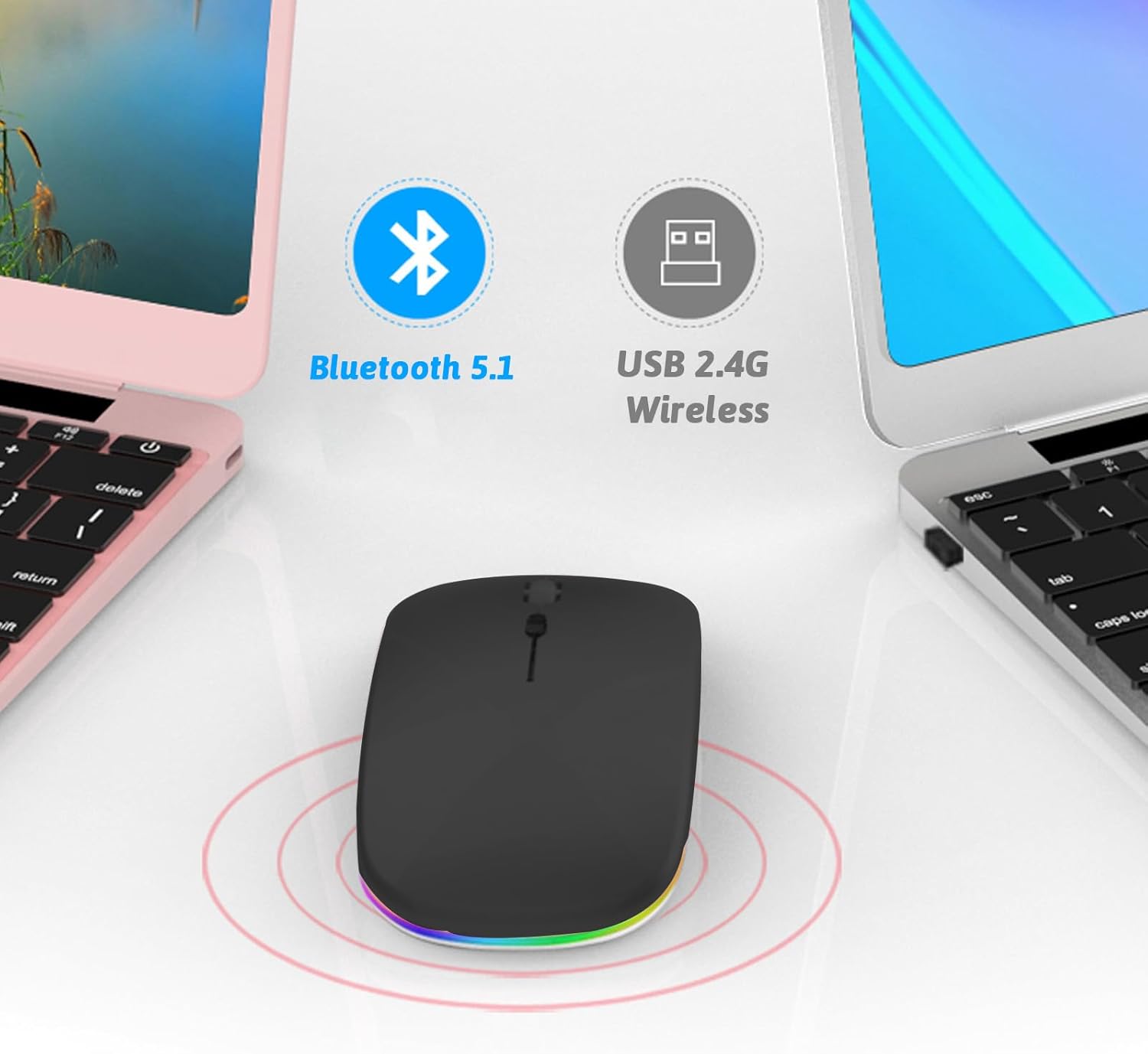 • | Безжична LED мишка | - Bluetooth и 2.4GHz режими, безпроблемно превключване, подходяща за всяко компютърно устройство, лаптоп, таблет и др.