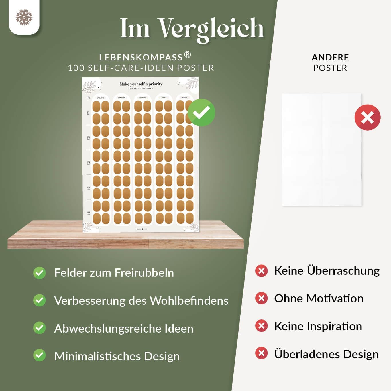 ЖИВОТЕН КОМПАС Плакат за скречване - 100 идеи за грижа за себе си за повече благополучие, вътрешен мир и любов към себе си - Вашият творчески спътник за осъзнато време за себе си - Плакат за скречване