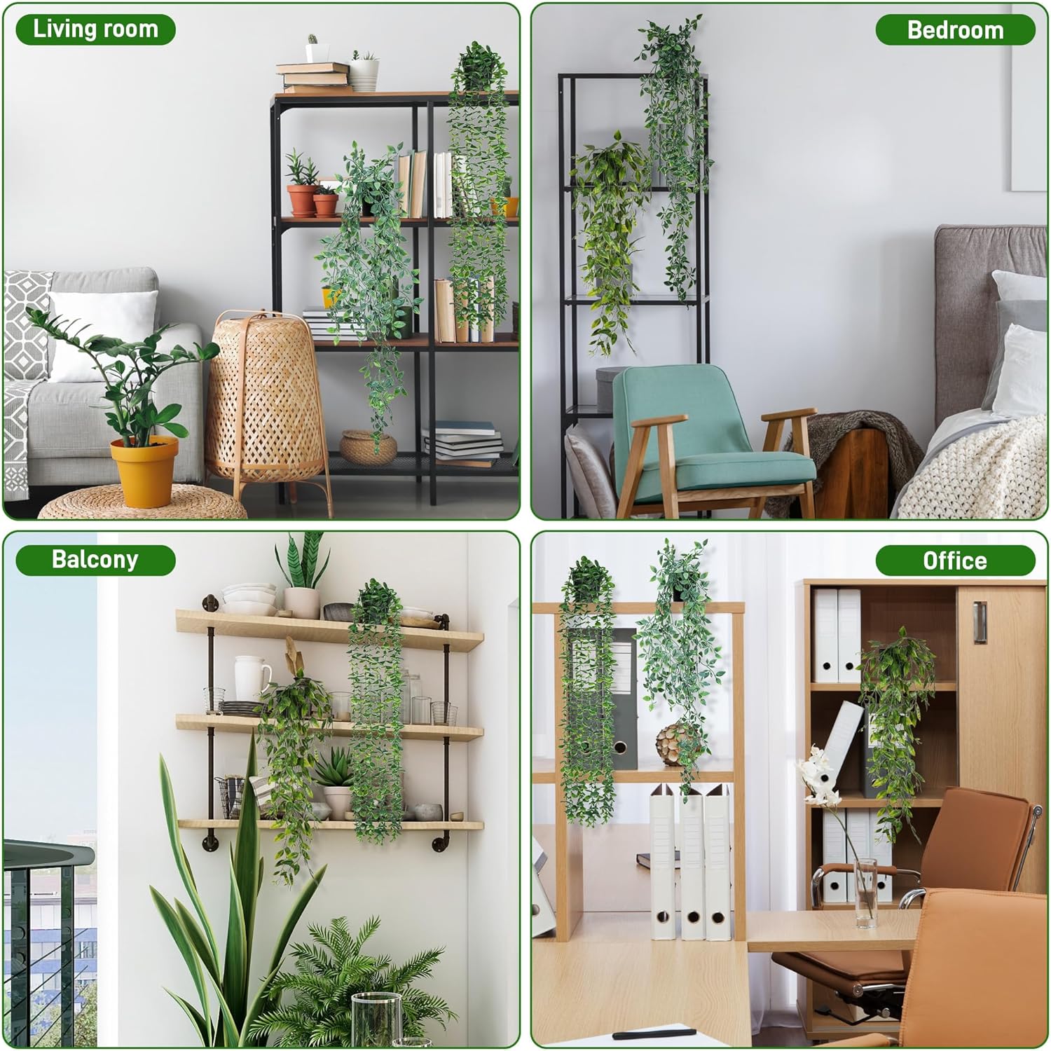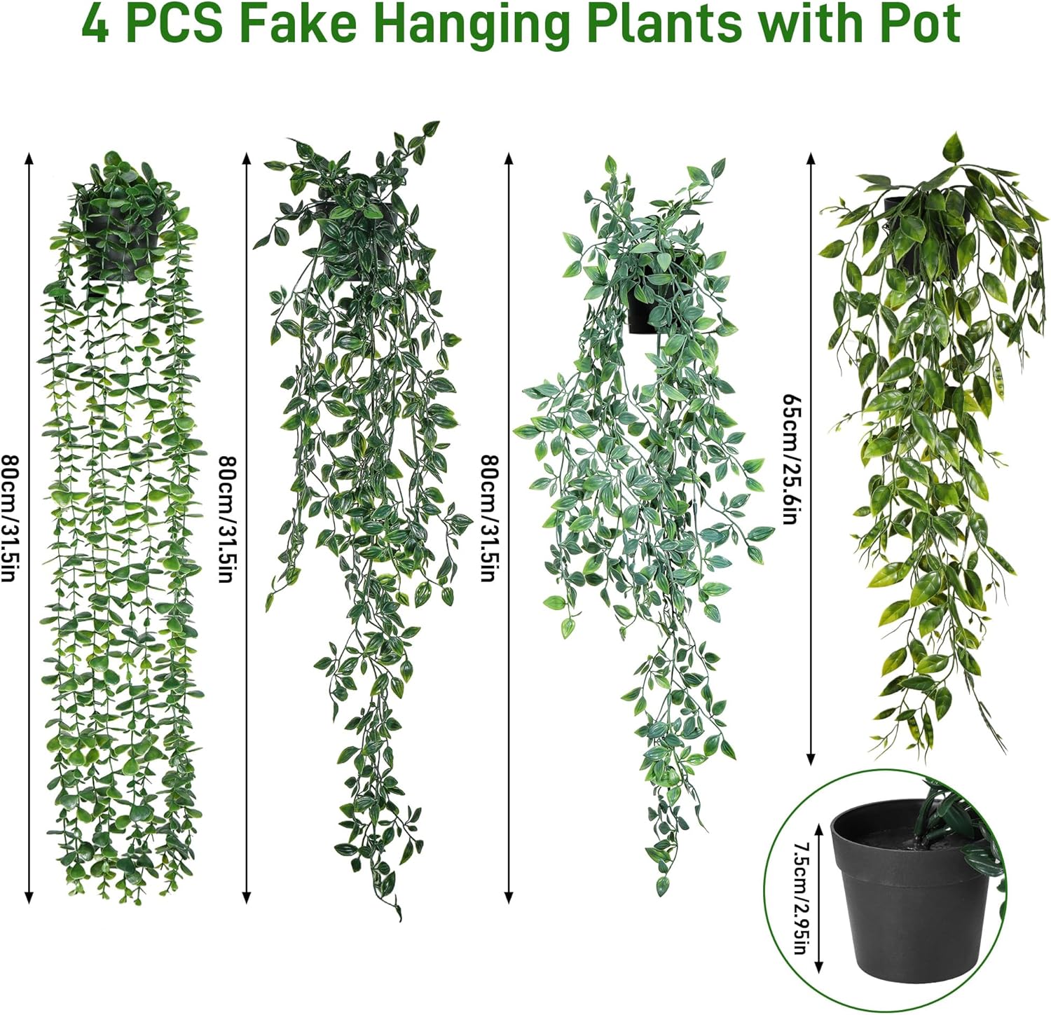 За разлика от други висящи растения, нашите изкуствени висящи растения се предлагат със саксии, така че можете да ги поставите директно на маса или рафт.