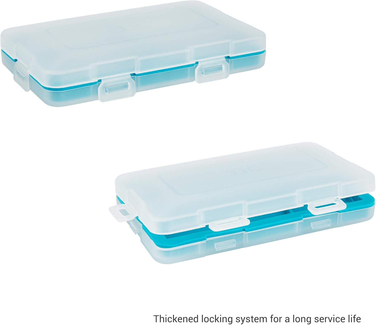 Кутията за батерии JJC е изработена от висококачествен PC материал, здрава и издръжлива, което я прави добър партньор, когато сте на къмпинг. Тя може да побере 6 броя батерии 18650 и ви позволява да съхранявате достатъчно резервни батерии, за да ги смените, когато фенерчето ви се изтощи. Кутията за батерии не само осигурява по-добра защита на вашите батерии, предпазвайки ги от късо съединение, но и ги държи подредени, за да се предотврати загуба. Освен това, кутията за батерии може да ги предпази от прах, влага, удари и пръски вода. Вътрешната гъбена възглавница също може ефективно да предотврати повреда на батериите и да ги предпази от удари. Здравата и ергономична заключваща система позволява лесно отваряне и затваряне. В допълнение, полупрозрачният корпус със светлосин уплътнителен пръстен прави кутията да изглежда модерен и красив.