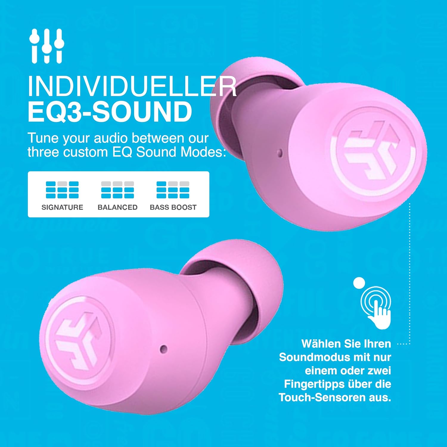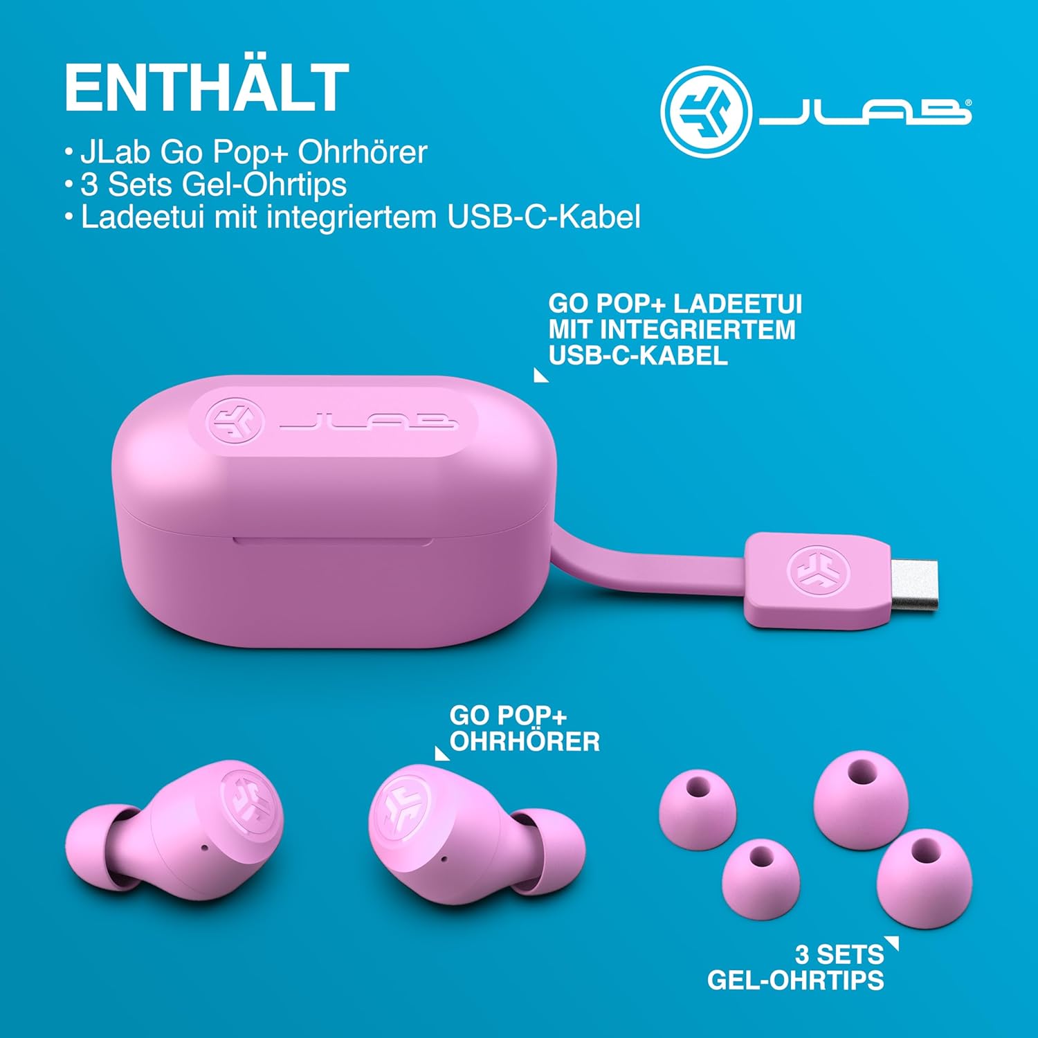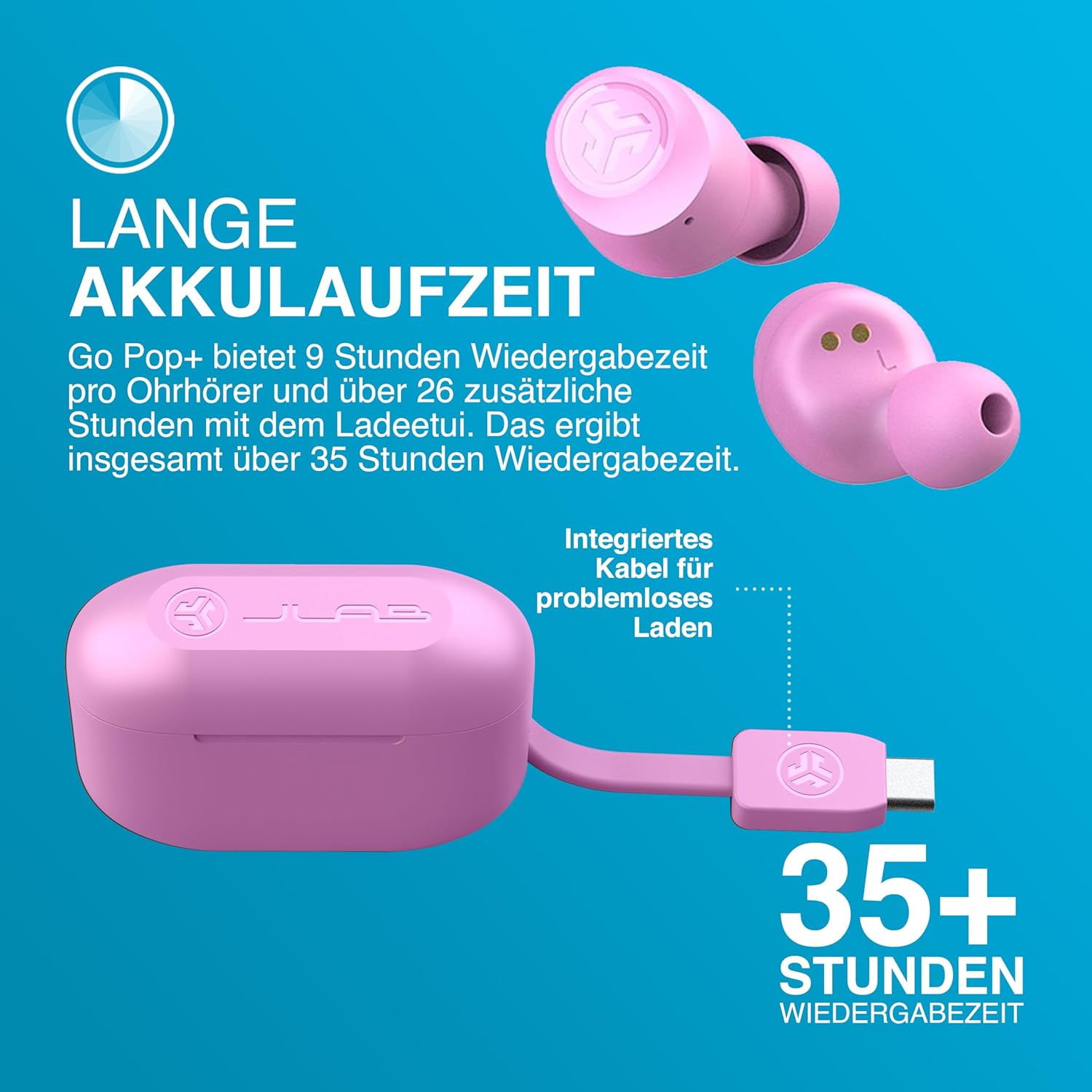 JLab Go Air Pop+ Безжични Bluetooth слушалки, Наистина безжични слушалки, 35+ часа работа, Безжични слушалки-капсули, Слушалки с микрофон, USB-C кутия за зареждане, Двойна връзка, EQ3 звук, Розови
