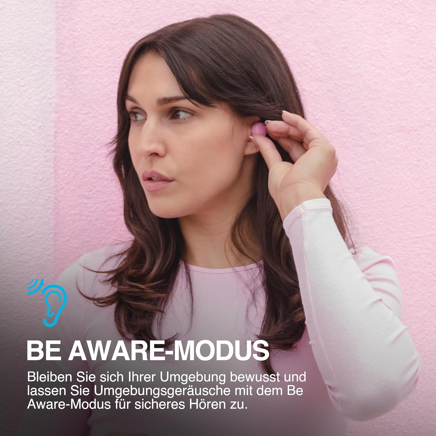 • ПЕРСОНАЛИЗИРАН ЗВУК ЗА ПРИЛОЖЕНИЕТО JLAB: използвайте приложението JLab, за да персонализирате безжично вашите слушалки Go Air Pop+ за уши, включително Be Aware, сензорни контроли и предпочитания за звук, или изберете предварително зададени настройки на JLab Signature, Balance или Bass Boost EQ