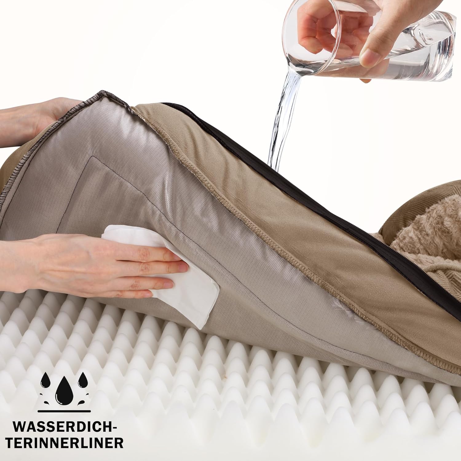 • ВОДОУСТОЙЧИВО И ПЕРЕЩО СЕ КУЧЕШКО ЛЕГЛО Това кучешко легло има сваляем калъф с цип, който може да се пере в пералня. Просто го хвърлете в пералнята и е като ново. Водоустойчивото вътрешно покритие предпазва пяната от разливане, повреди от вода и инциденти и удължава експлоатационния живот.