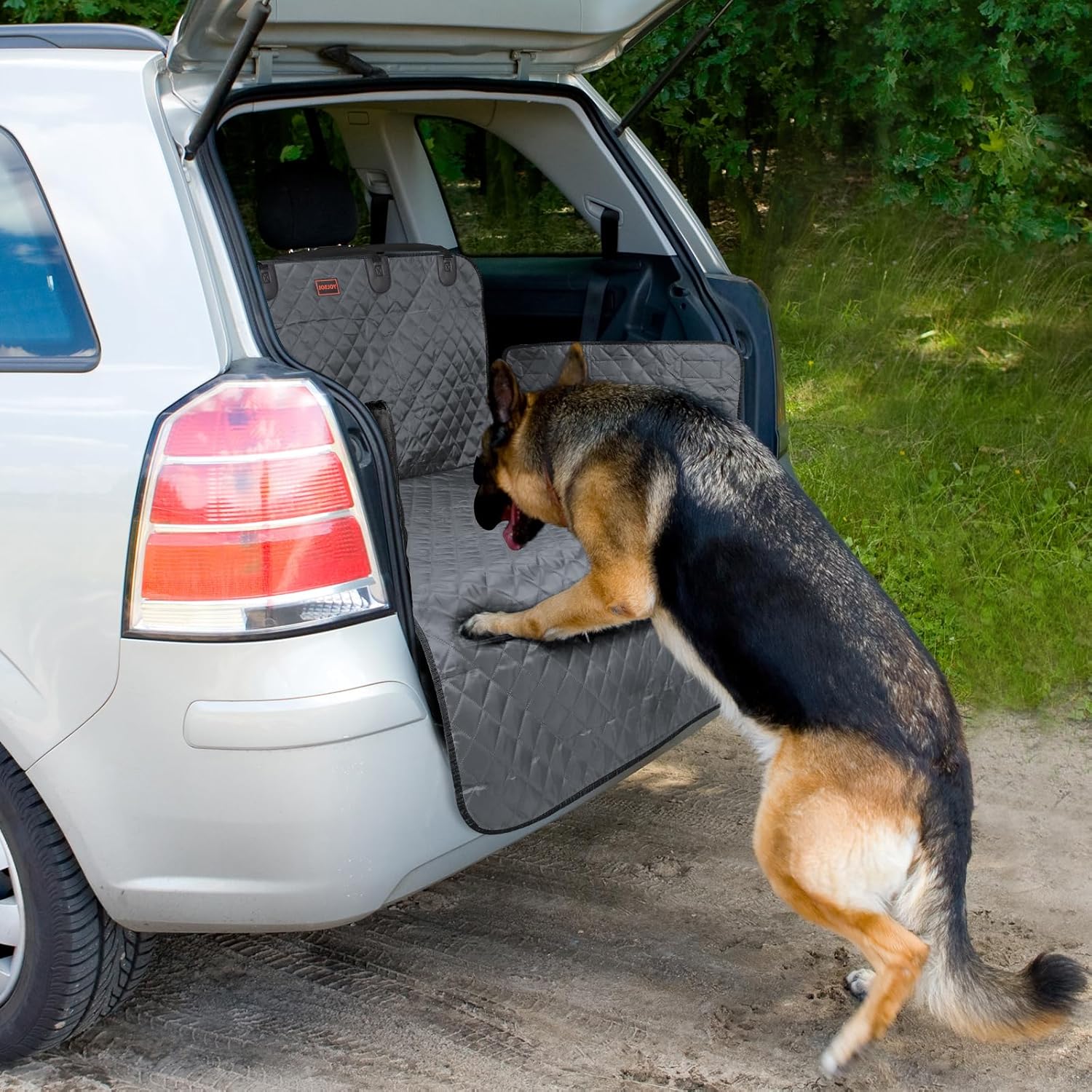 JOEJOY Протектор за багажник на кола за кучета със странична защита и защита на прага за товарене, Универсална защитна постелка за багажник, устойчива на надраскване от кучета - Одеяло за кучета за багажник на кола