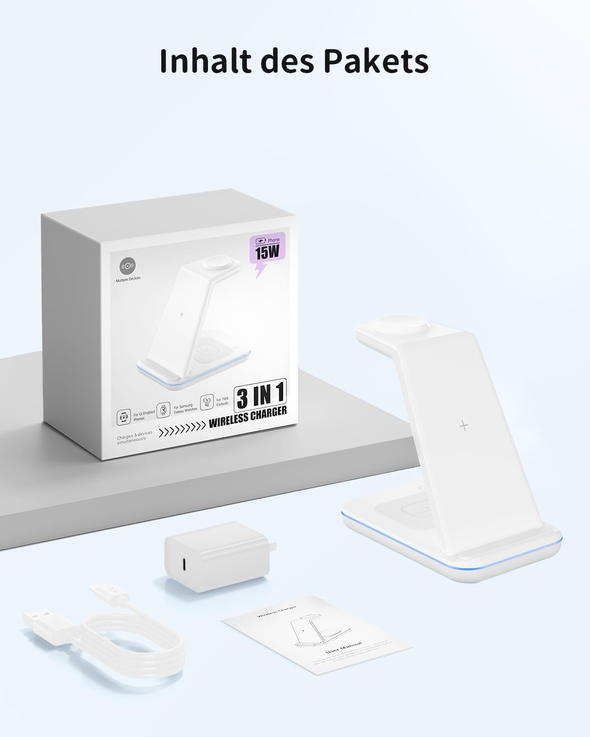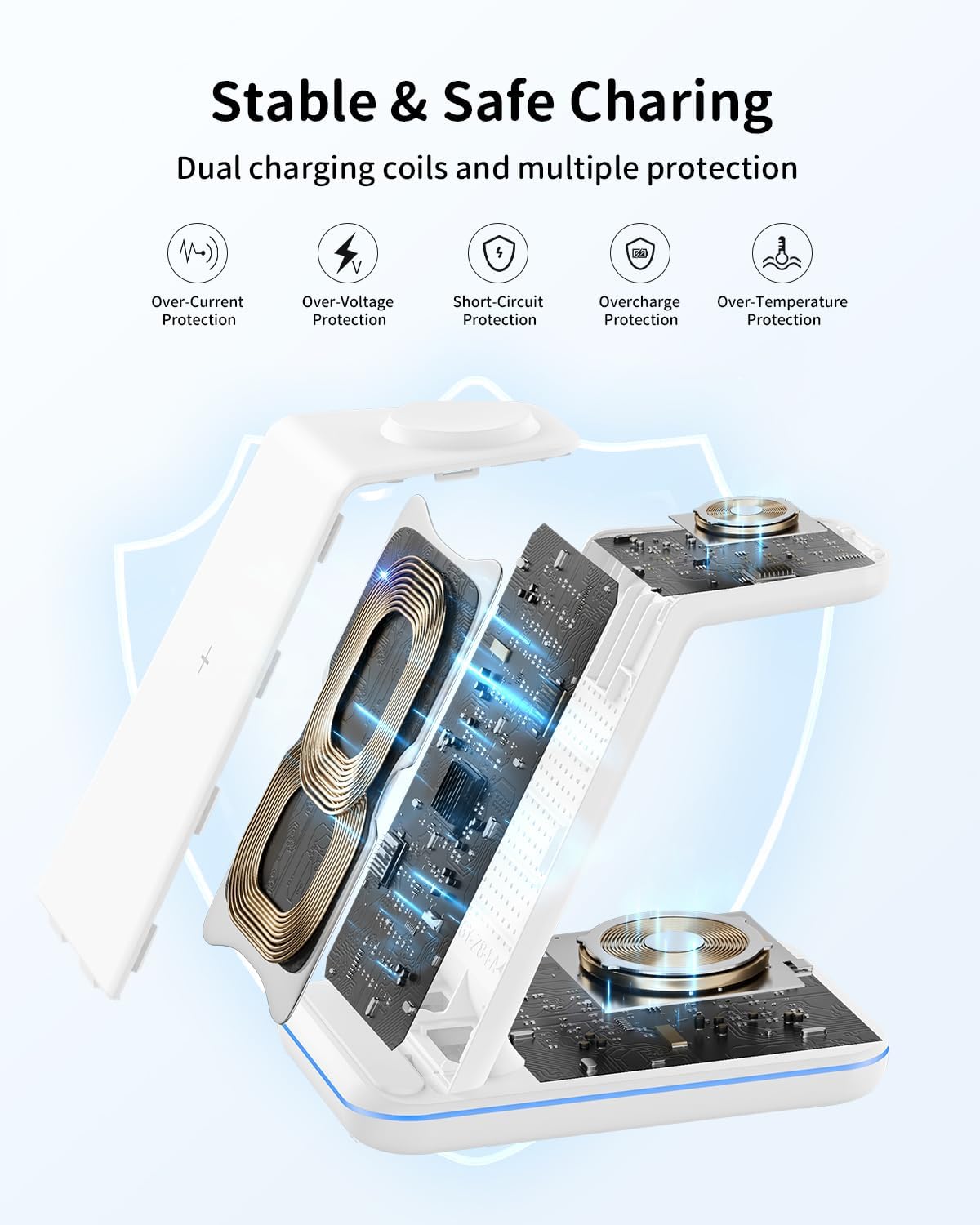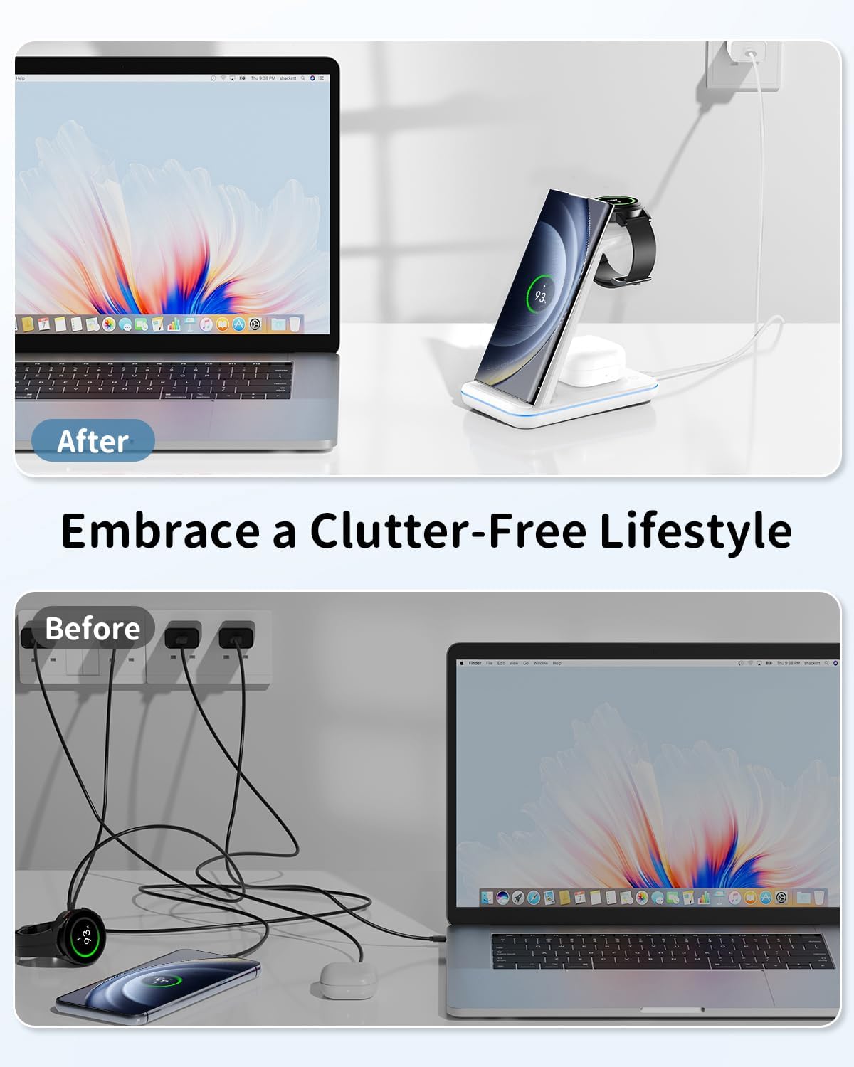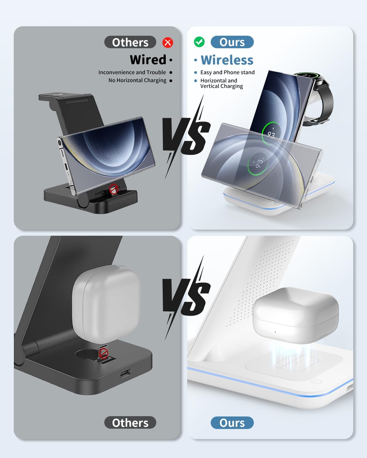 JoyGeek 3 в 1 индуктивна зарядна станция за Samsung, безжично зарядно за Samsung S25/S24/S23/S22/S21/ZFlip/Fold, индукционно зарядно за Galaxy Watch Ultra/8-4, безжично зарядно за Galaxy Buds