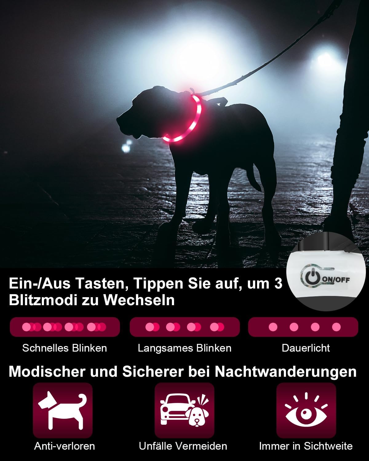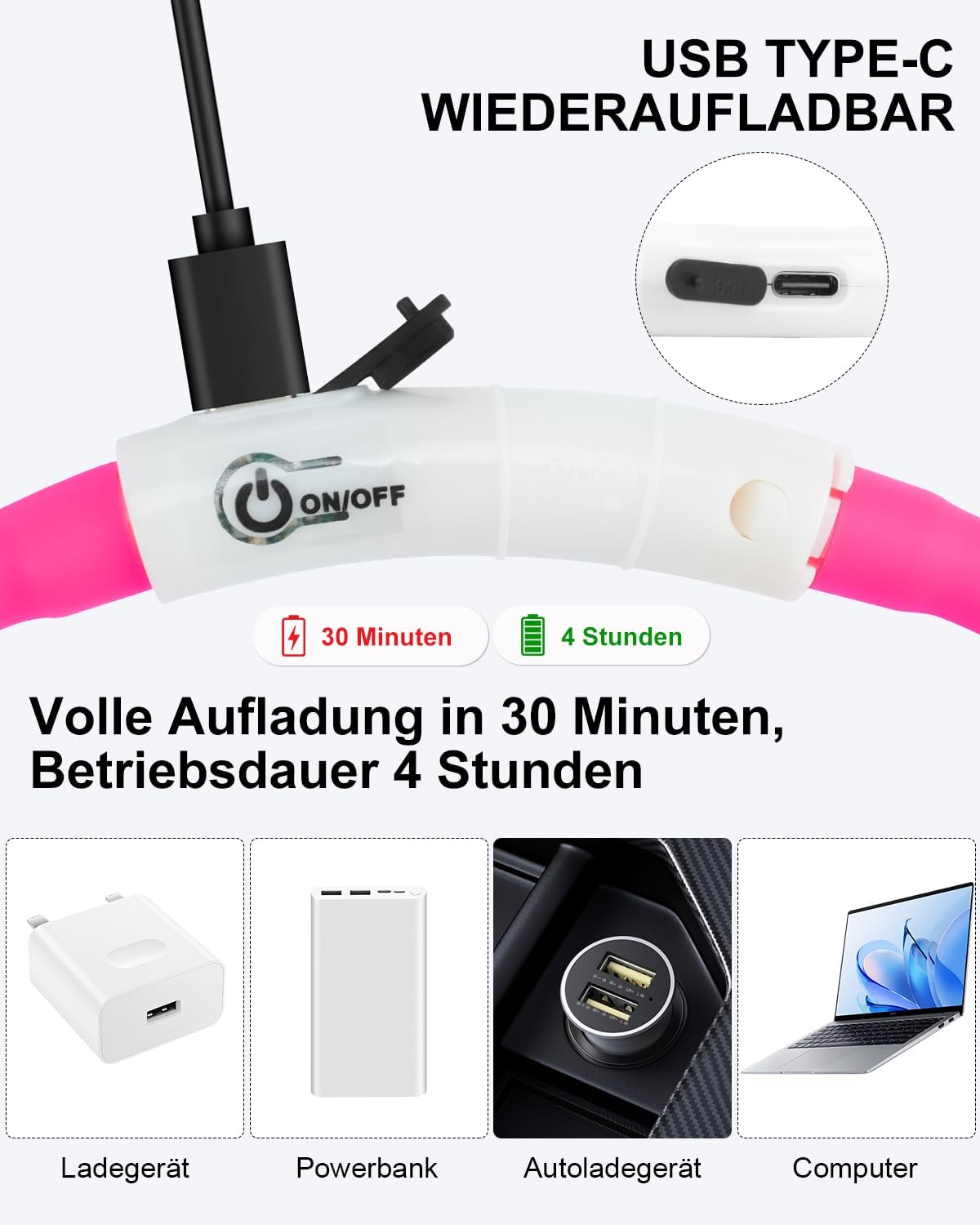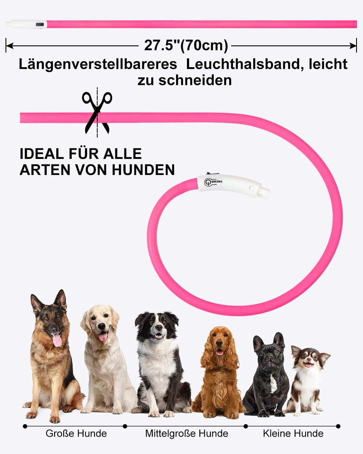 Joytale Светлинен нашийник за кучета с USB презареждаща се светеща каишка за кучета за големи, средни, малки кучета и кученца, LED каишка с 3 режима за безопасност, розова