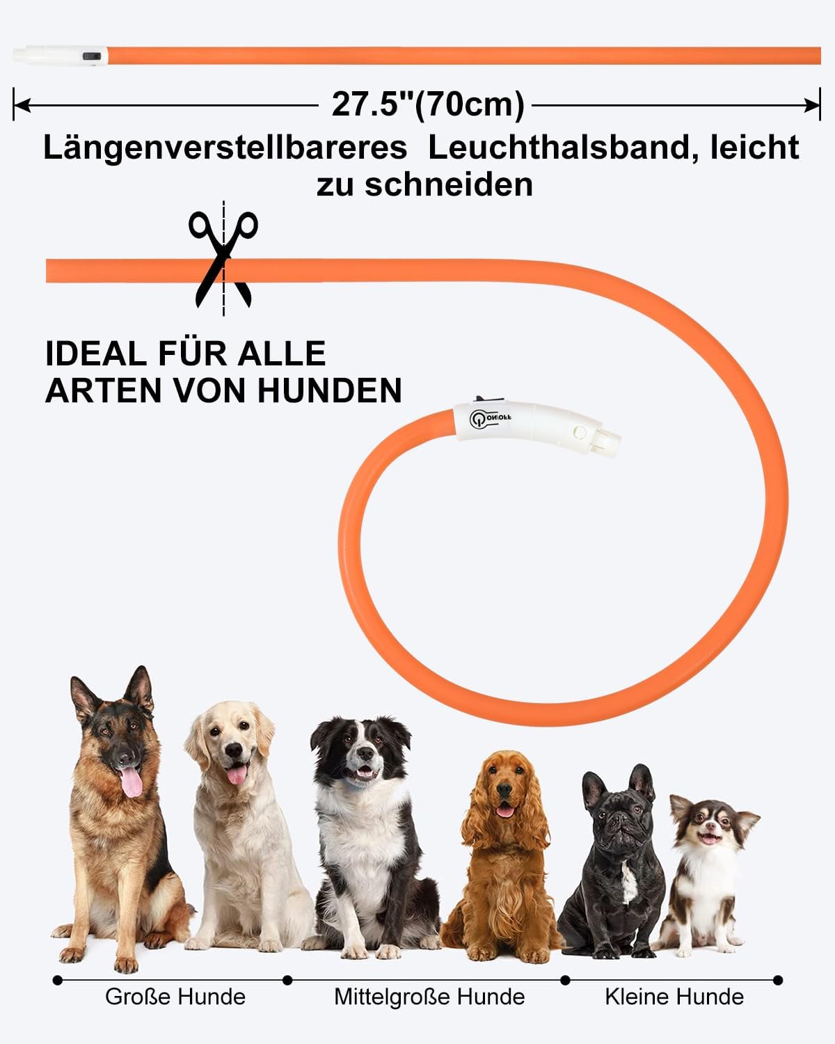 • РАЗМЕР ЗА РЯЗАНЕ: Дължината на светещия нашийник за кучета е 70 см (27,5 инча). Всичко, от което се нуждаете, е ножица, за да го скъсите до желаната дължина. Нашийникът се характеризира със своята здравина и лекота и е подходящ за всеки домашен любимец.