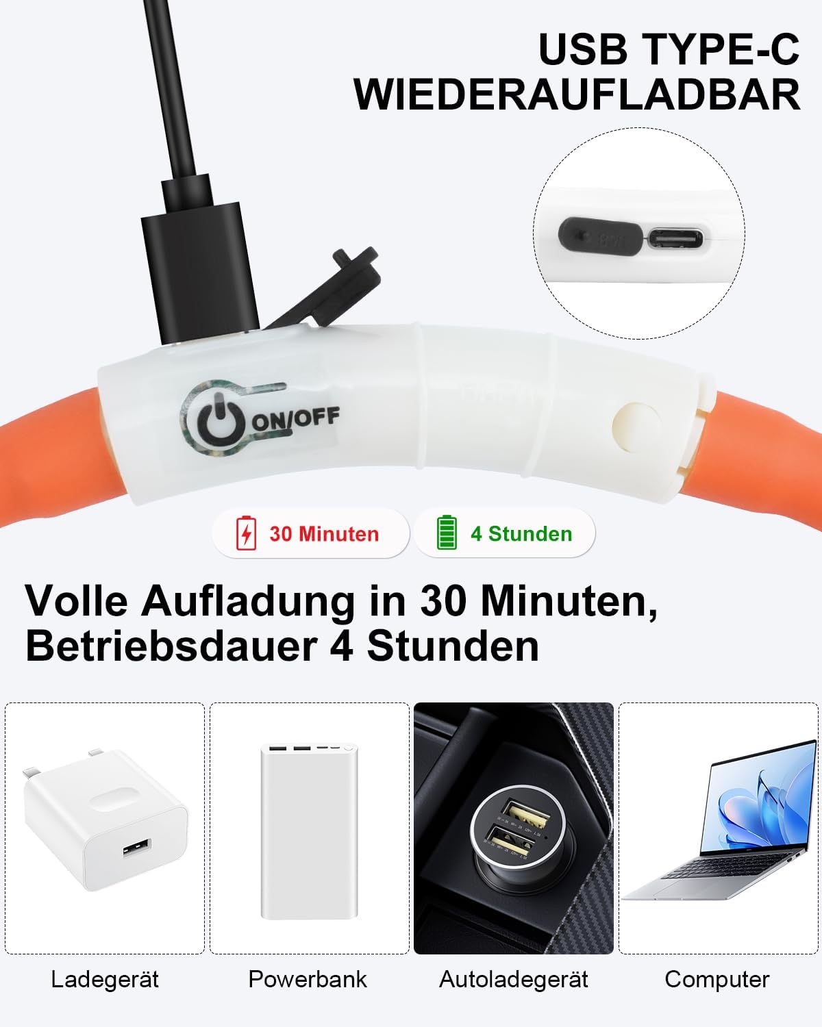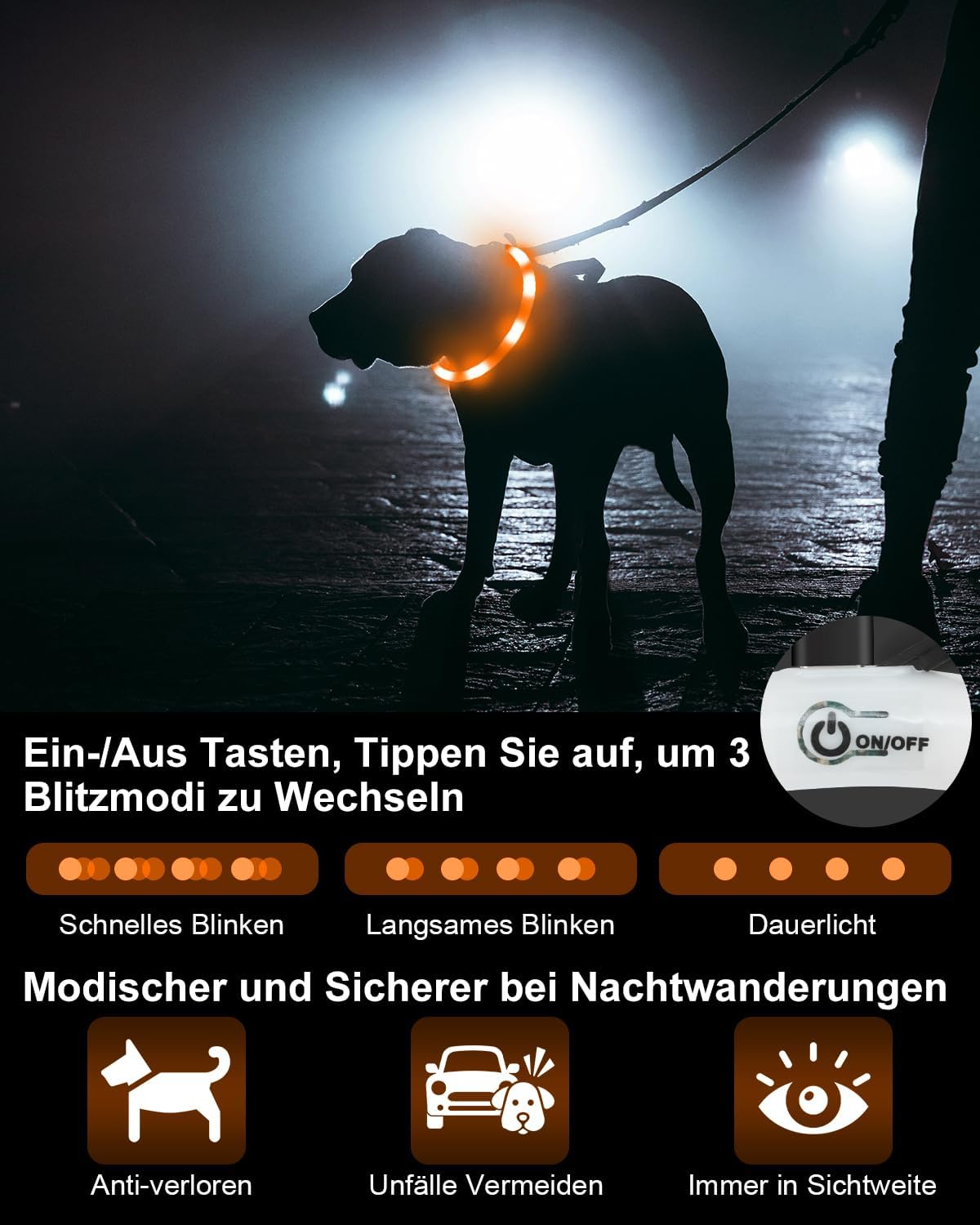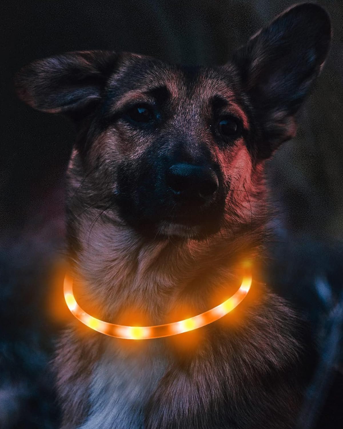 Joytale Светлинен нашийник за кучета с USB презареждаща се светеща LED каишка за големи, средни, малки кучета и кученца, 3 режима за безопасност, оранжев