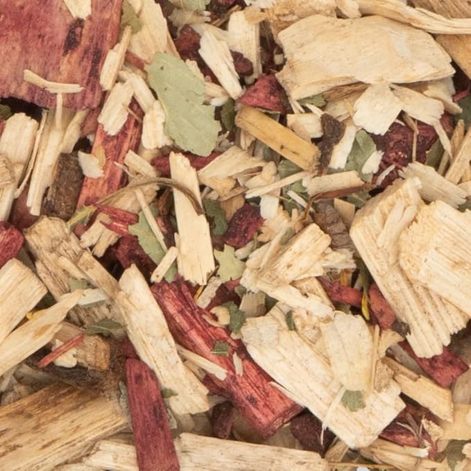Широколистна дървесина, брезови листа 3,5%, цветове от невен 0,5%, цветове от хибискус 0,5%.