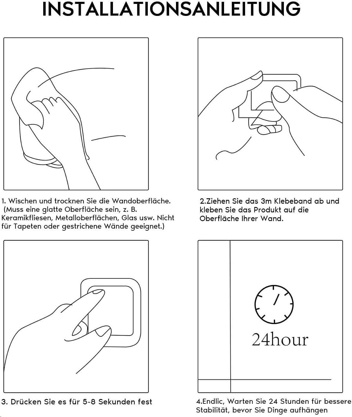 • Мощен и многофункционален: просто отлепете фолиото от самозалепващата се подложка без пробиване или други инструменти и я залепете върху гладката повърхност на стената. Лепящата подложка е силно залепваща и може да издържи 3-5 кг.