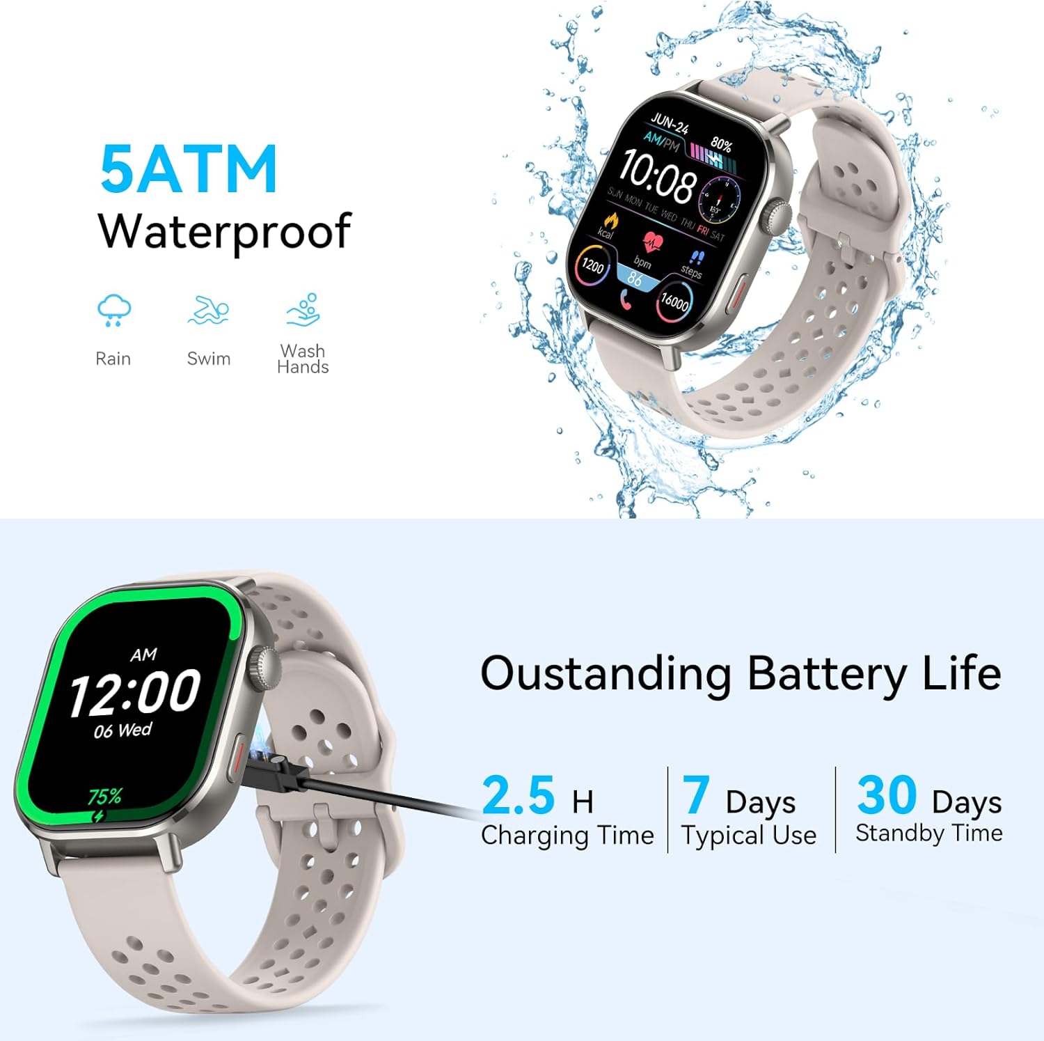 Jugeman GPS Smartwatch за мъже и жени 2.06 инча AMOLED часовници за мъже с функция за телефон, 5ATM водоустойчив фитнес тракер, спортен часовник с монитор за сън, пулсомер, крачкомер за Android и iOS