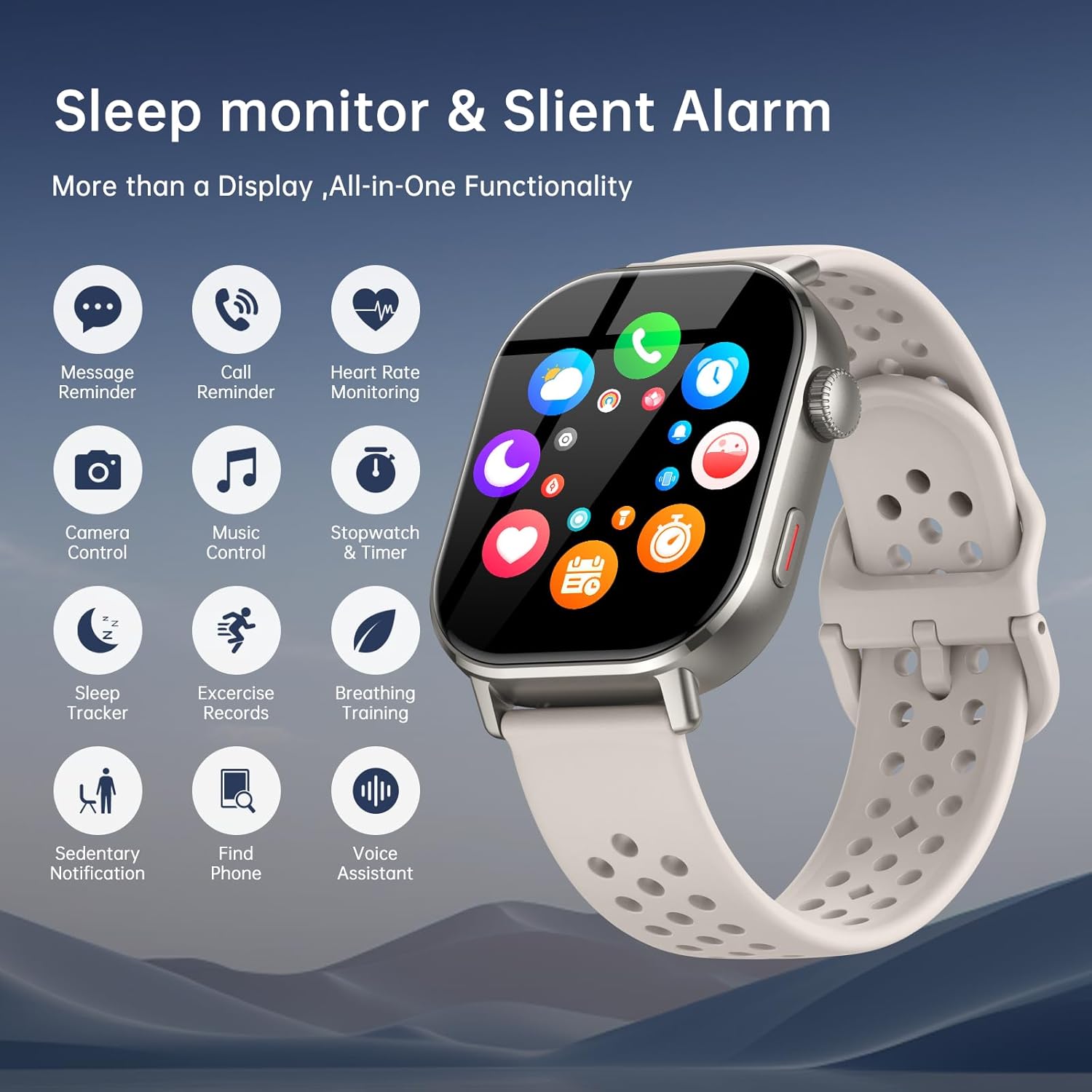 Смарт часовник за мъже и жени, 1.9-инчов HD смарт часовник за приемане/осъществяване на повиквания, фитнес часовник с монитор за пулс и сън, 113+ спорта, крачкомер за проследяване на активност, водоустойчив смарт часовник IP68 за iOS и Android