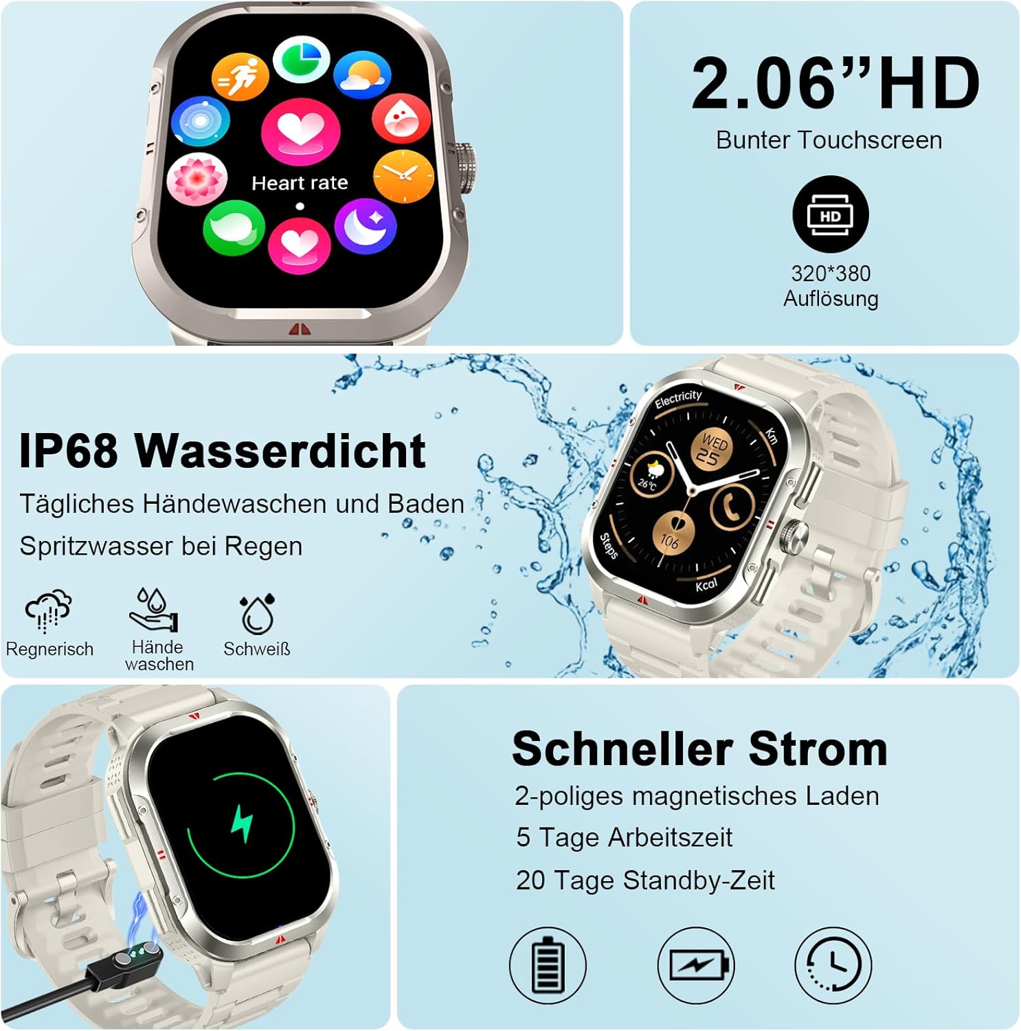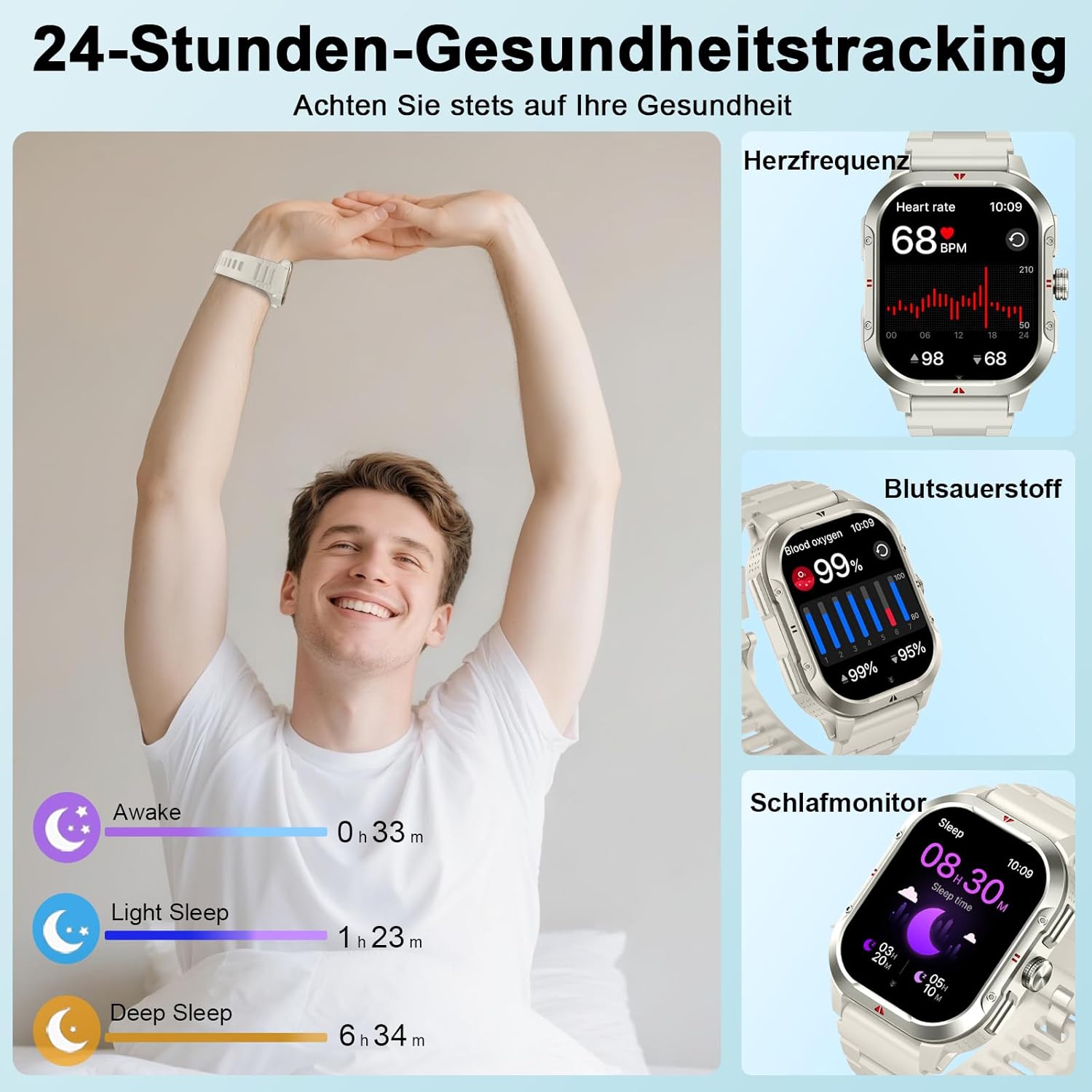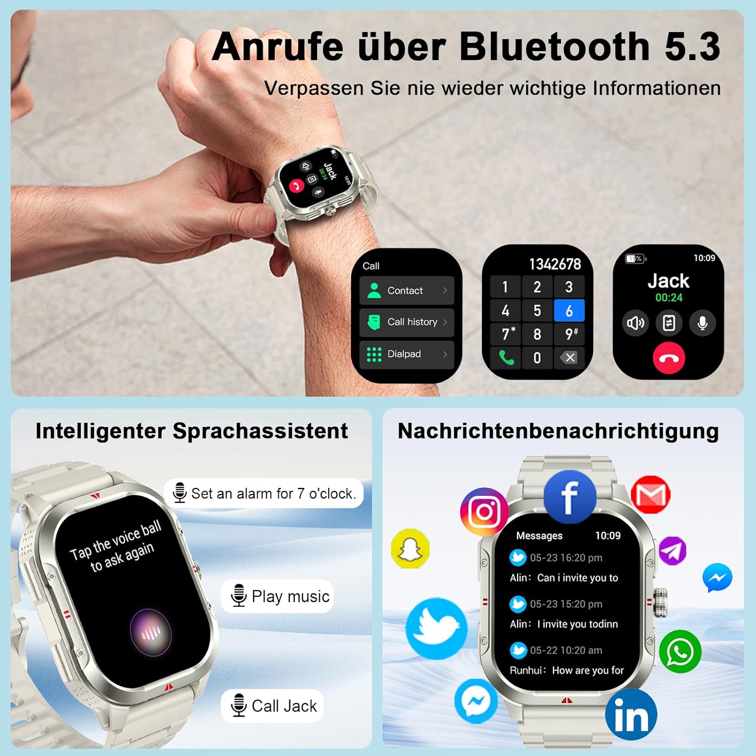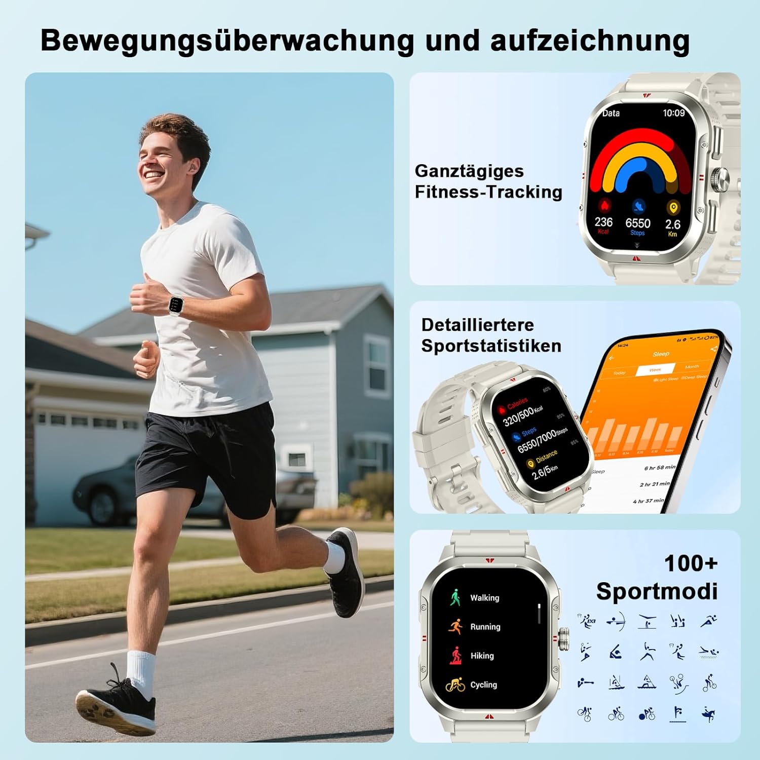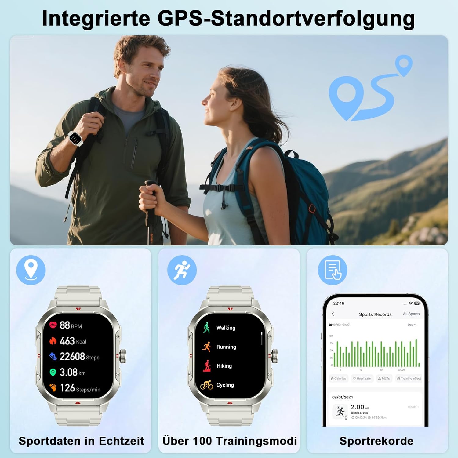 Jugeman Smartwatch за жени и мъже GPS смарт часовник с функция за телефон, 110+ спортни режима, спортен часовник с крачкомер, пулсомер, монитор за сън, водоустойчив IP68, за Android и iOS