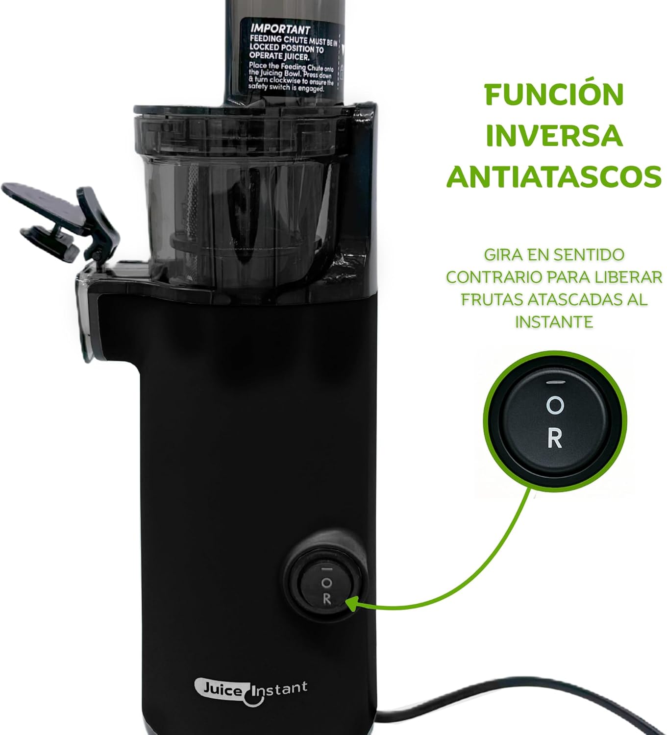 JuiceInstant Компактна сокоизстисквачка за плодове и зеленчуци, студено пресована, електрическа, без BPA, с цедка, херметична, бавна сокоизстисквачка, безопасна за витамини, черна