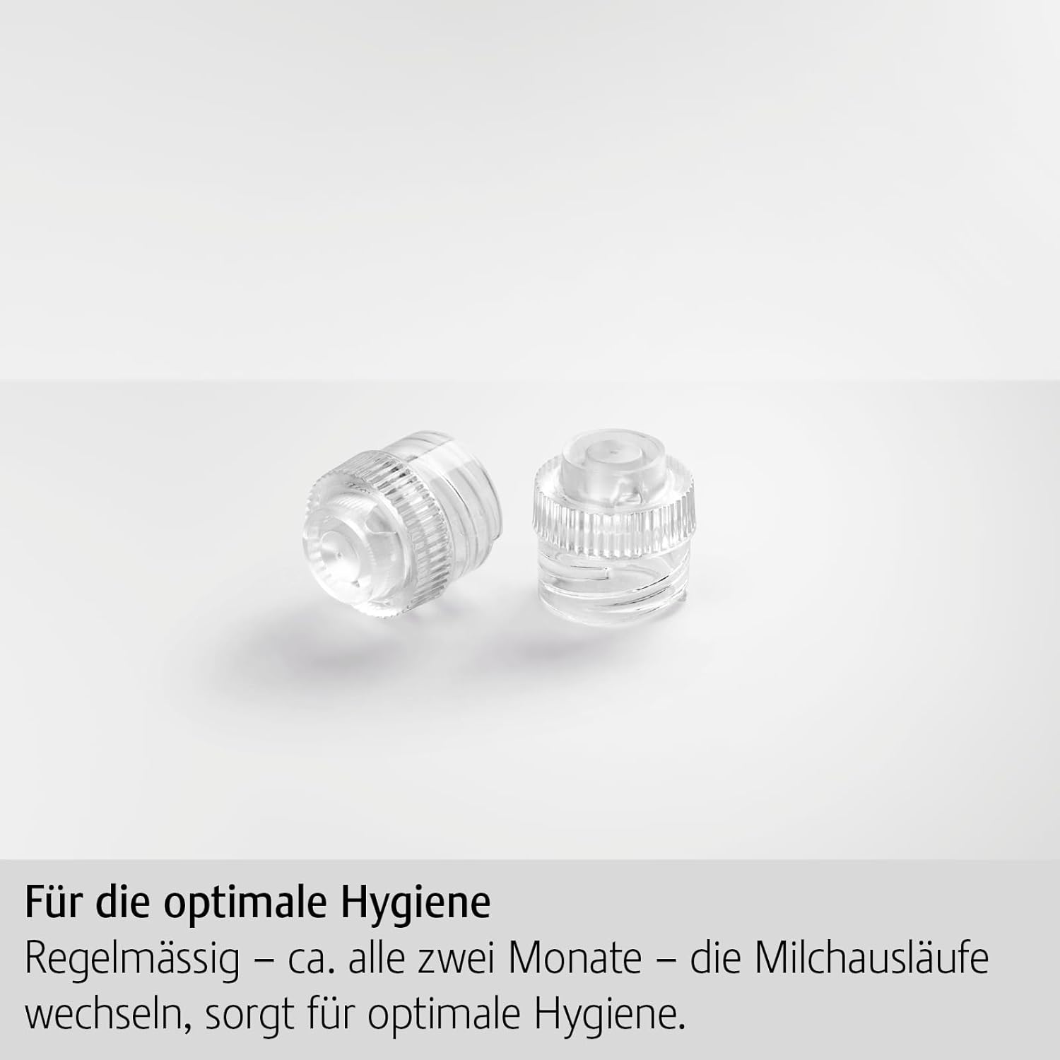 • Оптимална грижа в продължение на месеци: сменяемият чучур за мляко може лесно да се развие от дюзата за мляко и да се смени. Опаковката от 10 броя осигурява постоянно подаване.