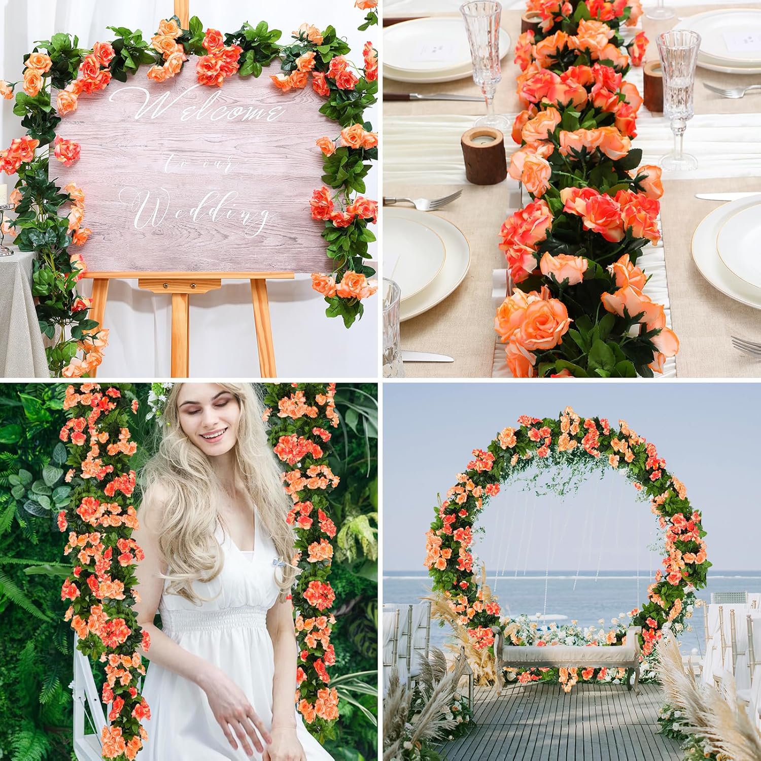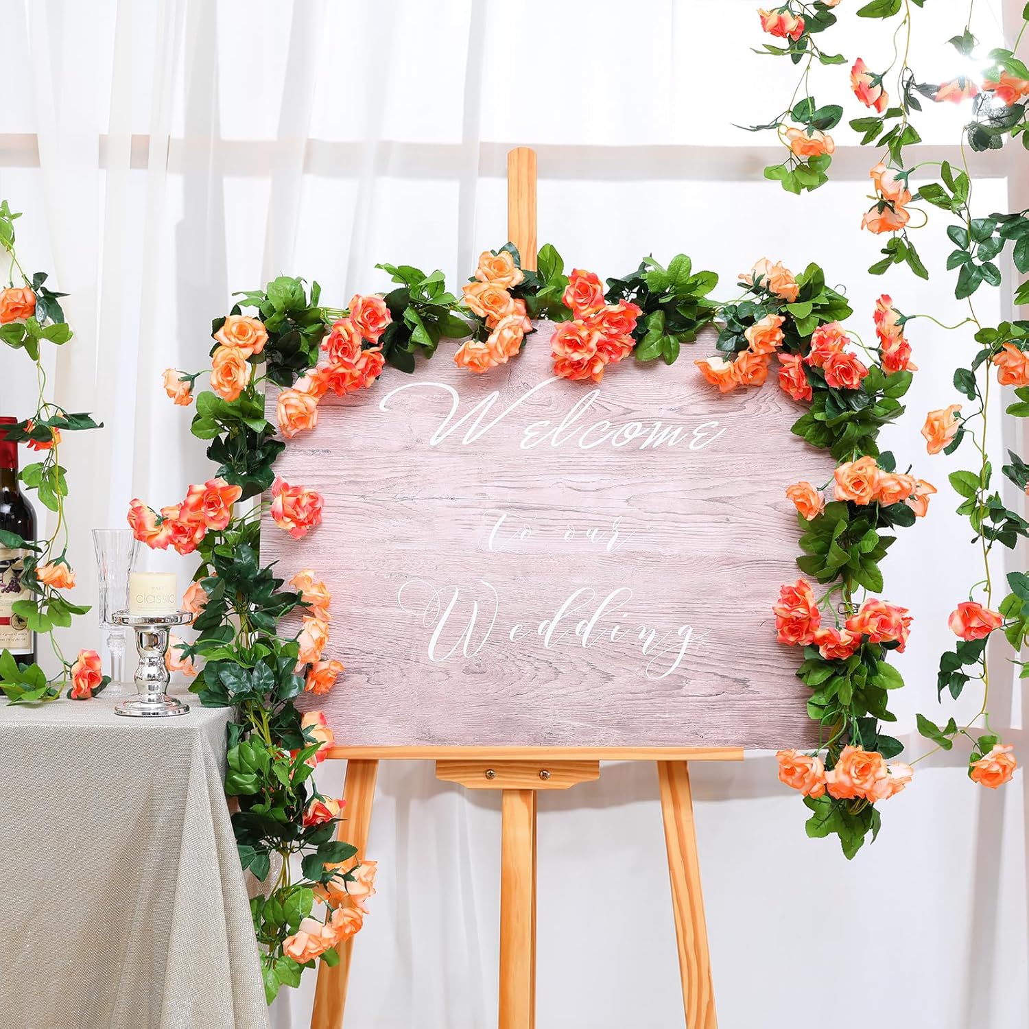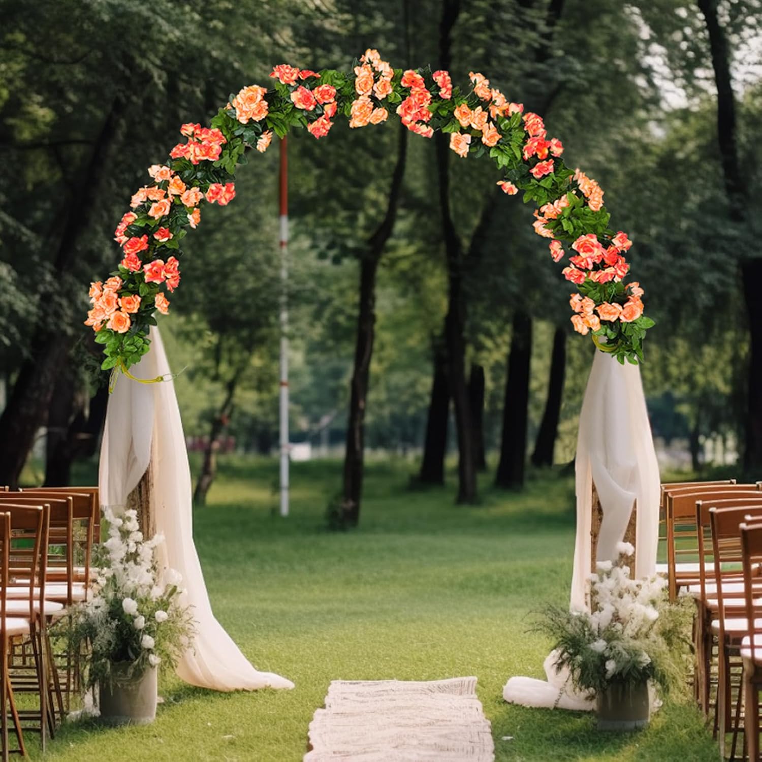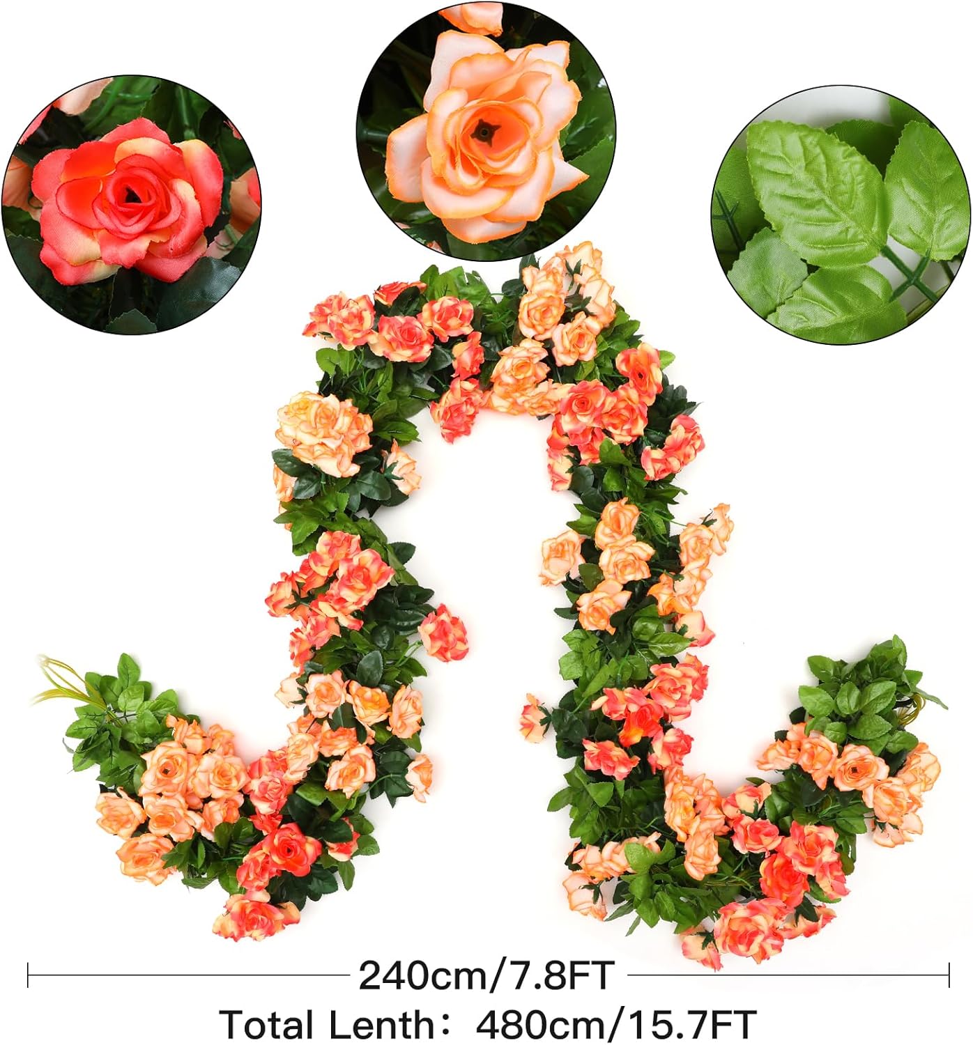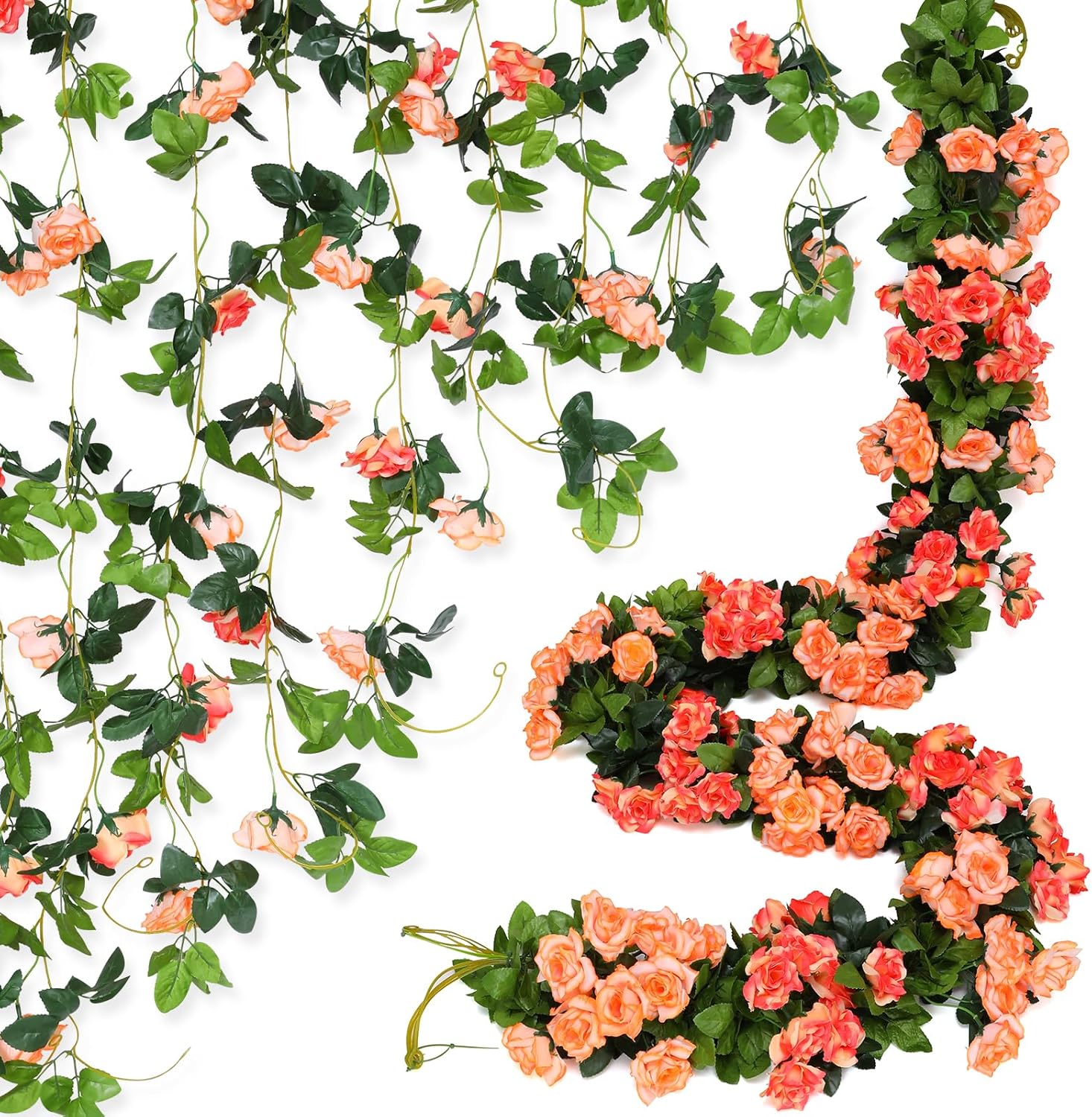 Изкуствена гирлянда от рози, добре изработена и цветна, изглежда като истинска.