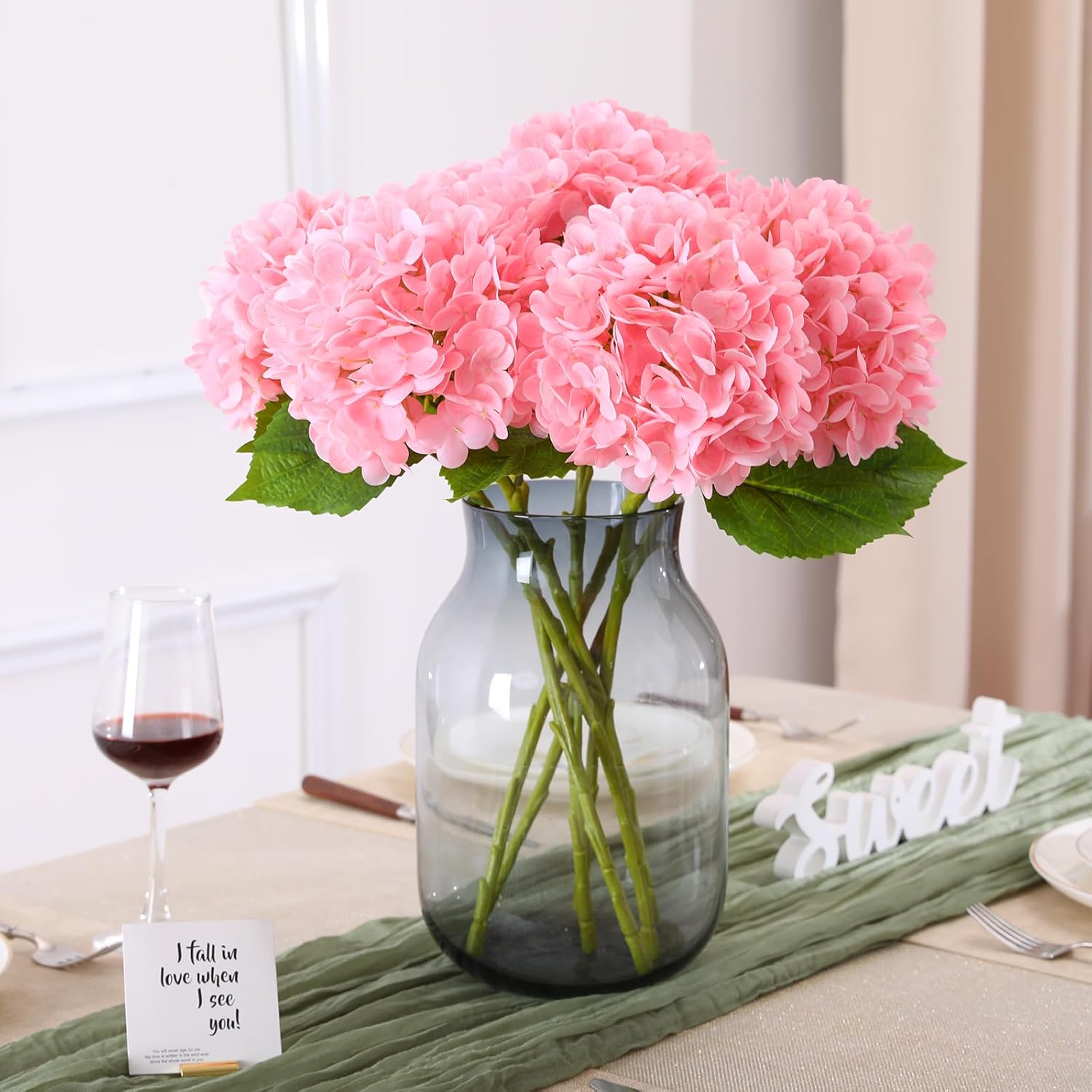 • ШИРОКО ИЗПОЛЗВАНИ Изкуствените хортензии са подходящи за много места. Например, сватбени декорации, партита, градини, църкви, магазини, хотели и много други обществени места. Те са отличен избор и за вътрешна и външна декорация.