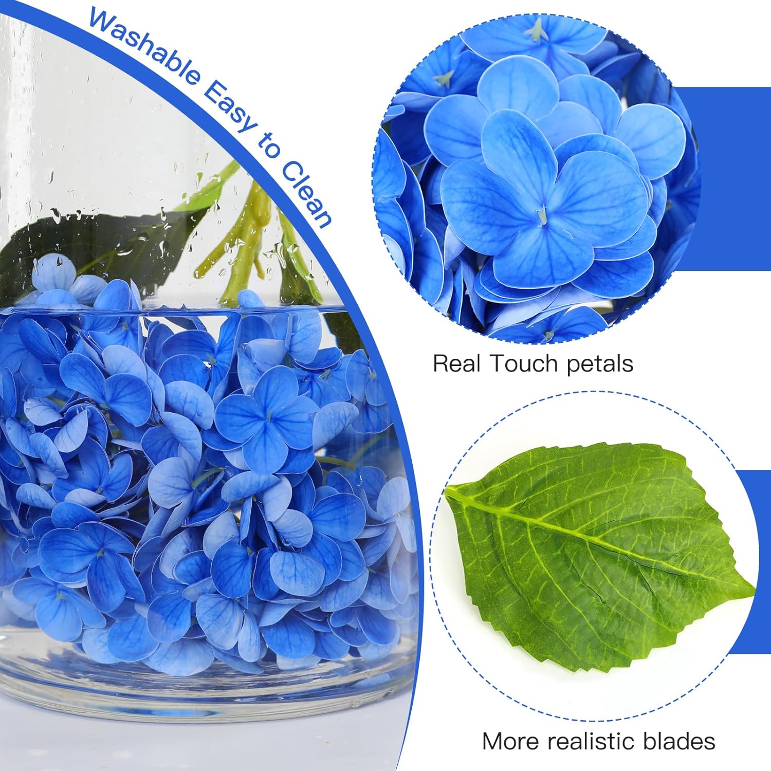 • ШИРОКО ИЗПОЛЗВАНИ Изкуствените хортензии са подходящи за много места. Например, сватбени декорации, партита, градини, църкви, магазини, хотели и много други обществени места. Те са отличен избор и за вътрешна и външна декорация.