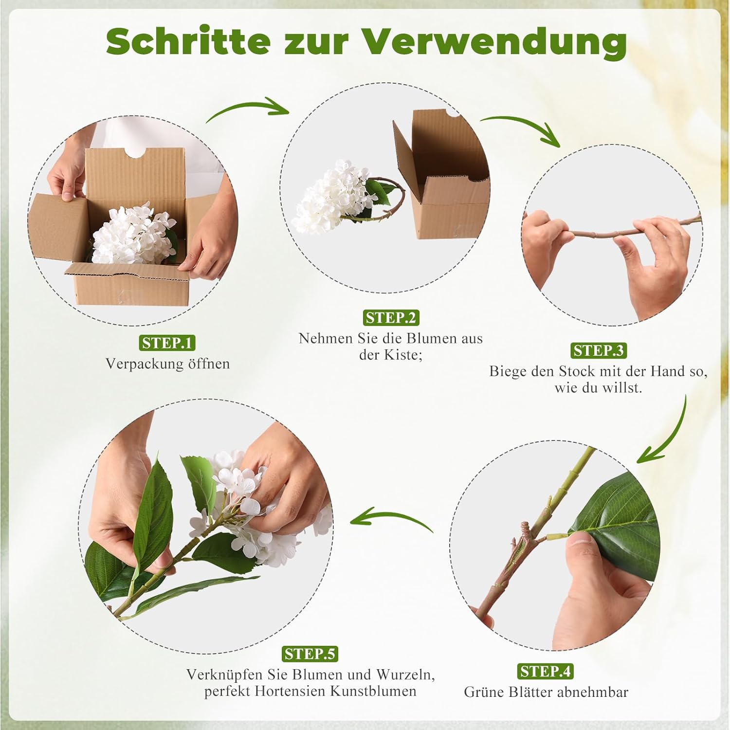 • ШИРОКО ИЗПОЛЗВАНИ Изкуствените хортензии са подходящи за много места. Например, сватбени декорации, партита, градини, църкви, магазини, хотели и много други обществени места. Те са отличен избор и за вътрешна и външна декорация.