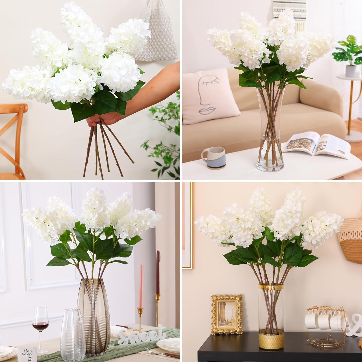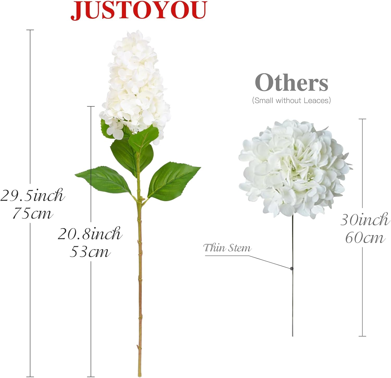 JUSTOYOU Комплект от 3 изкуствени цветя от хортензия, единични дълги стъбла, реалистични цветя от хортензия, големи истински букети от изкуствени хортензии с докосване 29,5 инча за сватба, дома, партита, градина (копринено бяло)