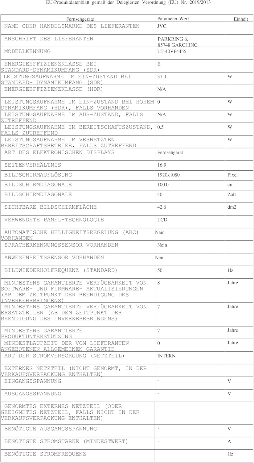 JVC 40-инчов телевизор LT-40VF4455 Full HD телевизор с диагонал на екрана 102 см и вграден троен тунер, LED телевизор черен