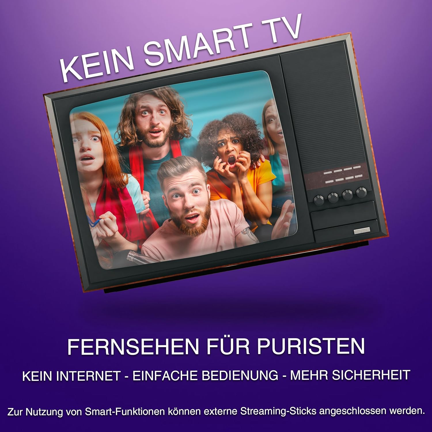 Mit einem Non-Smart-TV haben Sie die volle Kontrolle über Ihr Fernseherlebnis. Ohne Internet und vorinstallierte Apps bleibt Ihre Privatsphäre stets geschützt – kein Tracking, keine personalisierte Werbung. Die Bedienung ist schnell und unkompliziert ohne lange Menü-Ladezeiten oder lästige Software-Updates. Und wenn Sie doch mal streamen möchten können Sie das jederzeit flexibel und unabhängig mit einem entsprechenden Stick ihres bevorzugten Anbieters.