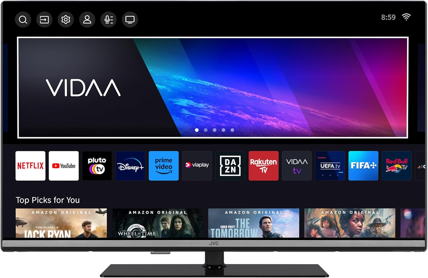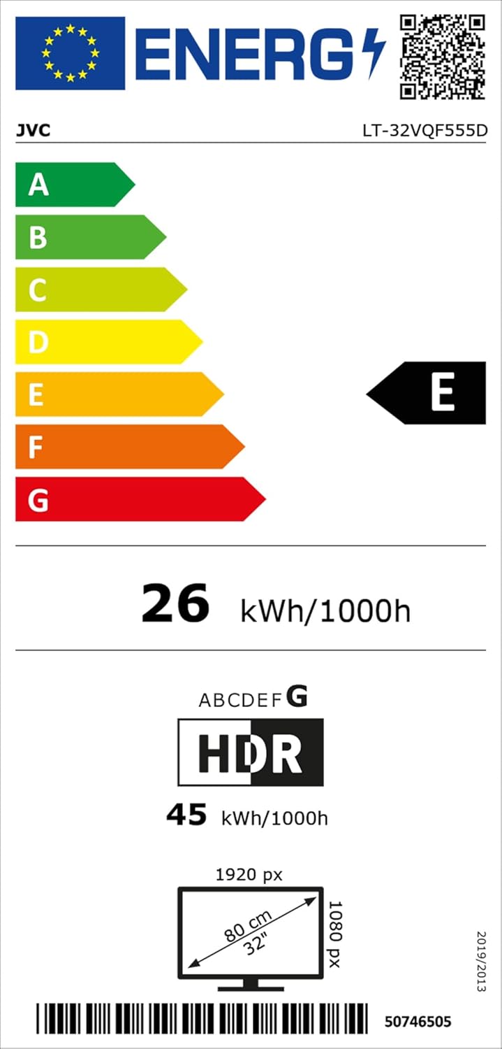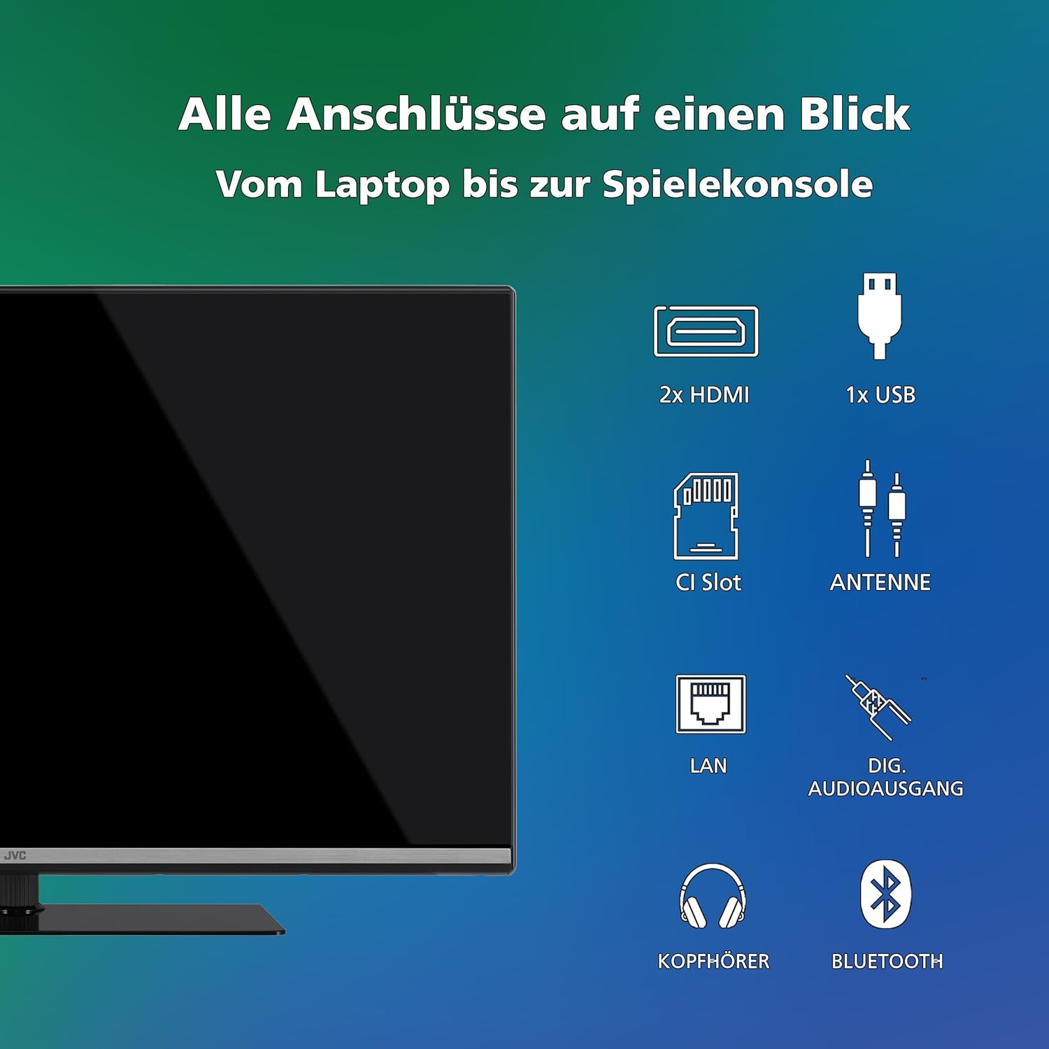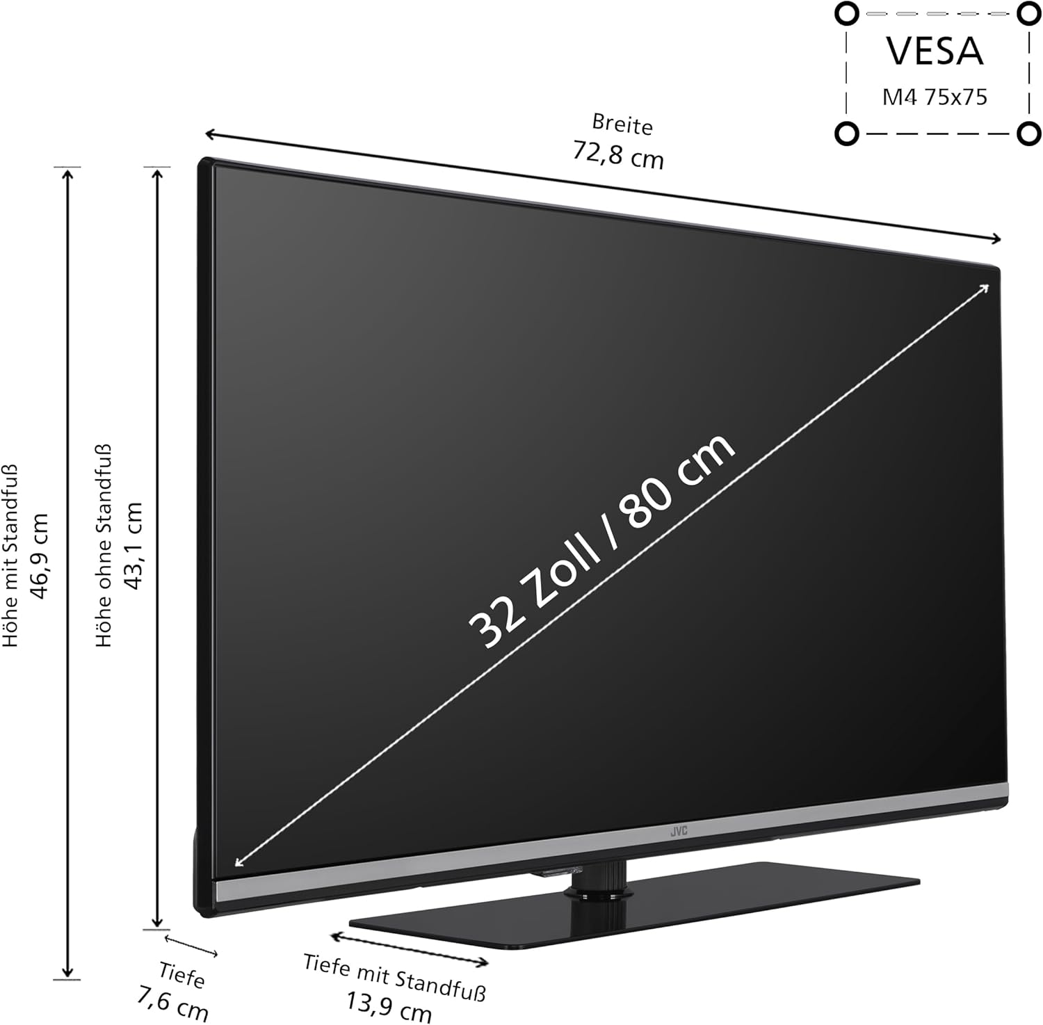 JVC QLED телевизор 32 инча Smart TV VIDAA LT-32VQF555D - Full HD телевизор, HDR телевизор с вграден троен тунер, LED телевизор, черен