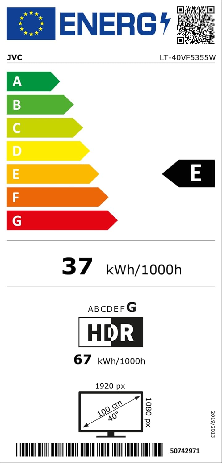 JVC TiVo LT-40VF5355W Smart TV 40-инчов Full HD телевизор, HDR телевизор с троен тунер и 6 месеца HD+ включен, LED телевизор бял