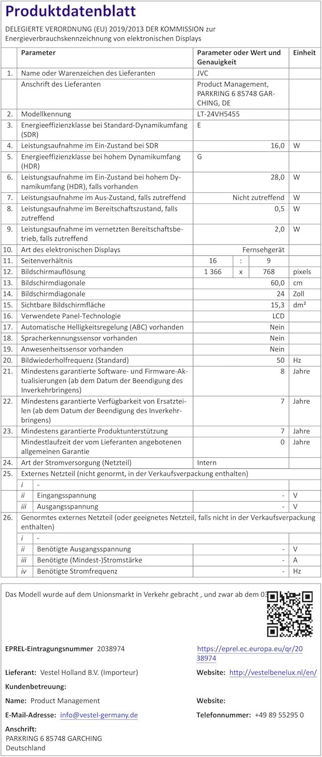 JVC TiVo TV 24-инчов смарт телевизор с TiVo (HD-Ready, HDR, троен тунер, 6 месеца HD+ включен) LT-24VH5455