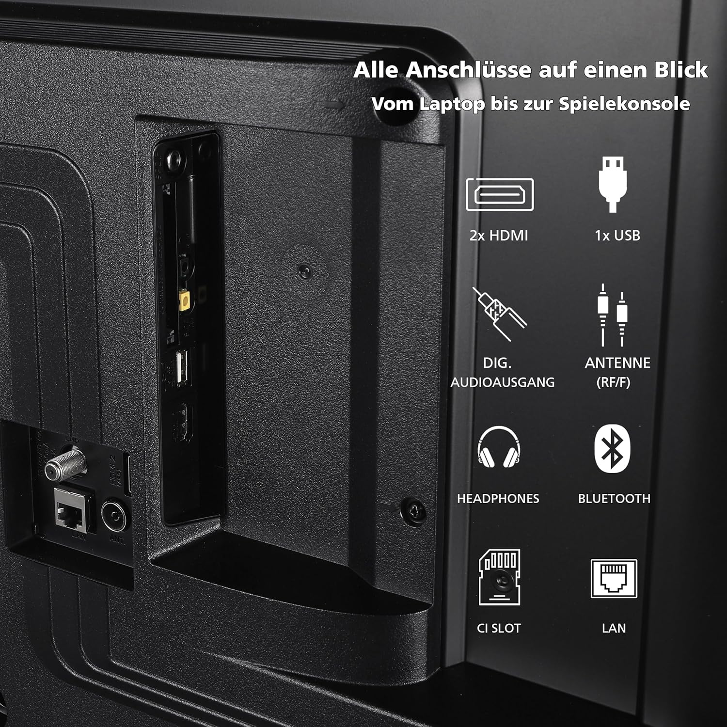 • ПОВЕЧЕ ОТ ПРОСТО ТЕЛЕВИЗОР - Плоският екран е с диагонал 80 см (32 инча). Вграденият троен тунер ви позволява да приемате програми чрез антена (DVB-T2), кабел (DVB-C) или сателит (DVB-S2), без да е необходим допълнителен приемник.